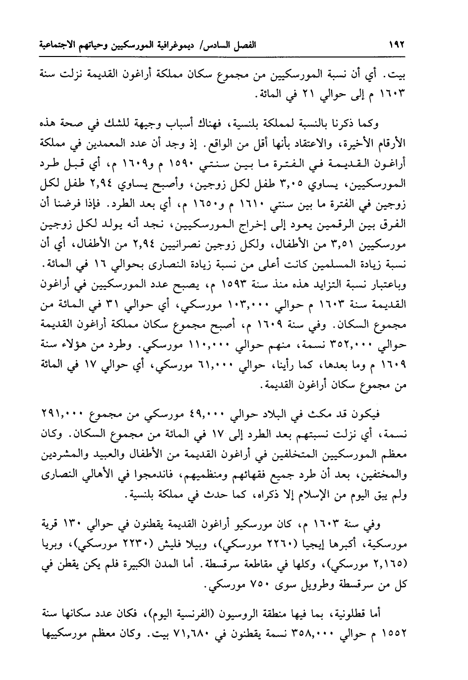 بيت. أي أن نسبة المورسكيين من مجموع سكان مملكة أراغون القديمة نزلت سنة 1603 م إلى حوالي 21 في المائة.