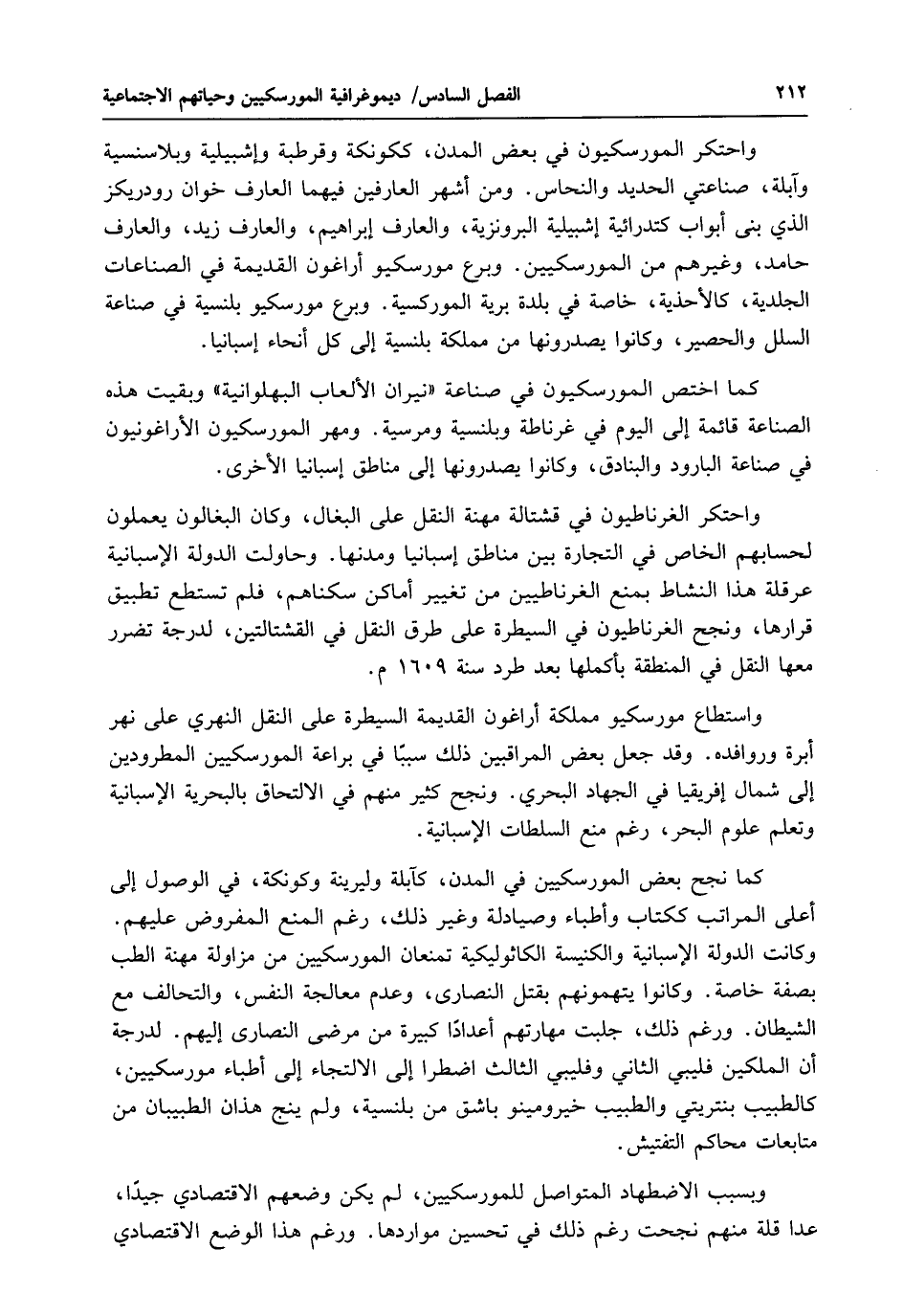 كما نجح بعض المورسكيين في المدن، كآبلة وليرينة وكونكة، في الوصول إلى أعلى المراتب ككتاب وأطباء وصيادلة وغير ذلك، رغم المنع المفروض عليهم.