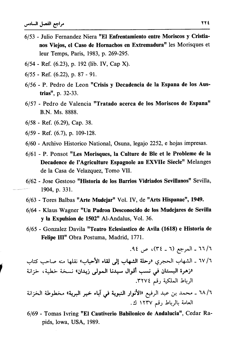 6/ 53 - Julio Fernandez Niera "El Enfrentamiento entre Moriscos y Cristia- nos Viejos, el Caso de Hornachos en Extremadura" les Morisques et leur Temps, Paris, 1983, p. 269-295.