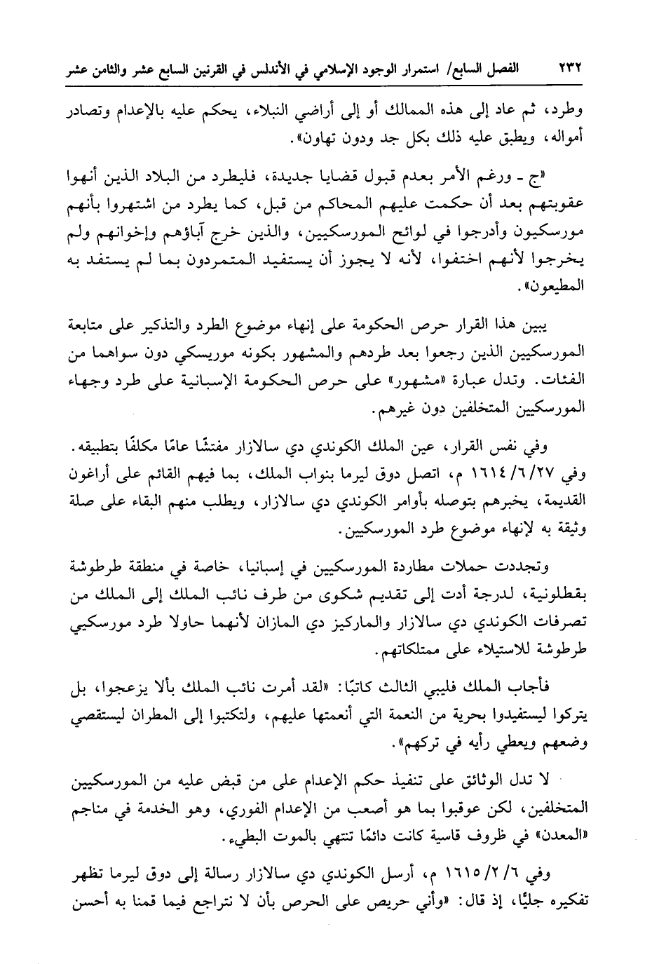 "ج - ورغم الأمر بعدم قبول قضايا جديدة، فليطرد من البلاد الذين أنهوا عقوبتهم بعد أن حكمت عليهم المحاكم من قبل، كما يطرد من اشتهروا بأنهم مورسكيون وأدرجوا في لوائح المورسكيين، والذين خرج آباؤهم وإخوانهم ولم يخرجوا لأنهم اختفوا، لأنه لا يجوز أن يستفيد المتمردون بما لم يستفد به المطيعون".