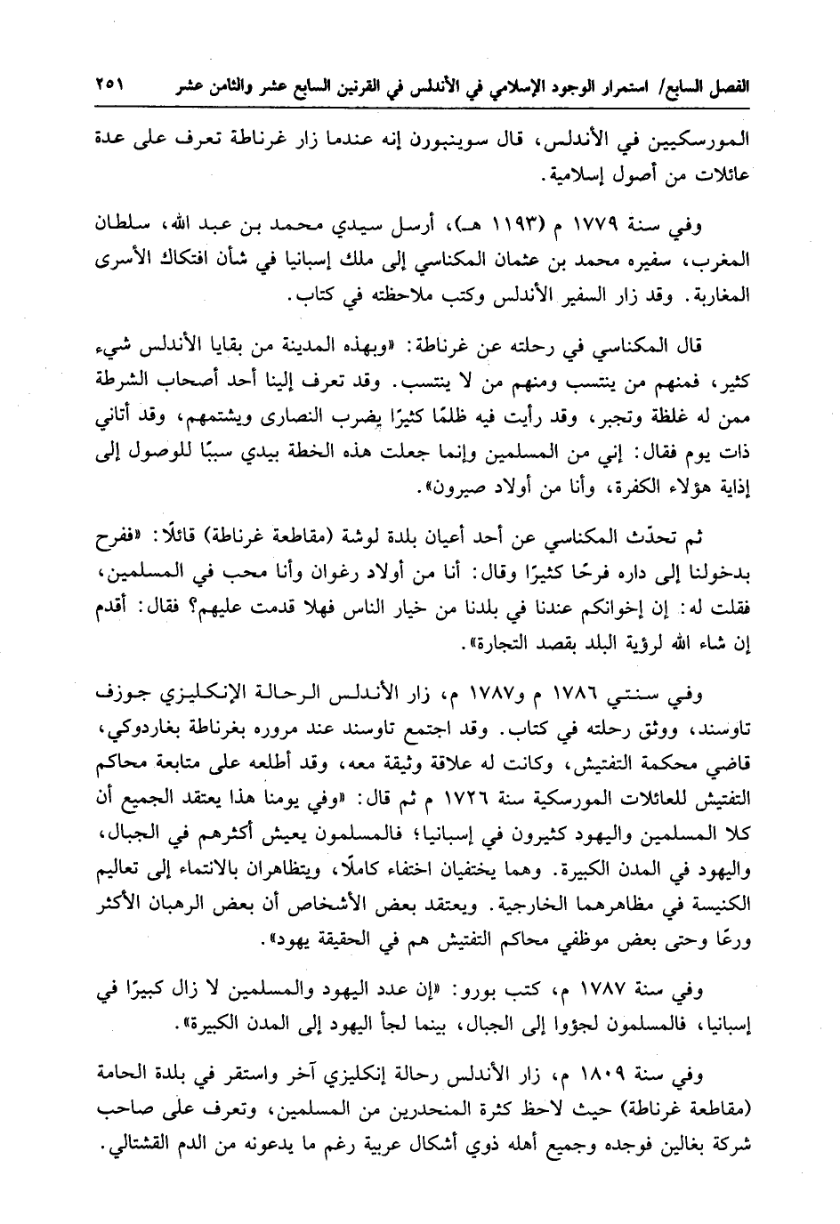 وفي سنة 1779 م (1193 هـ)، أرسل سيدي محمد بن عبد الله، سلطان المغرب، سفيره محمد بن عثمان المكناسي إلى ملك إسبانيا في شأن افتكاك الأسرى المغاربة. وقد زار السفير الأندلس وكتب ملاحظته في كتاب.
