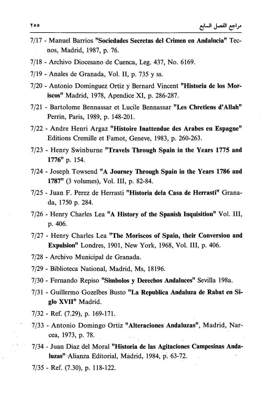 7 / 27 - Henry Charles Lea "The Moriscos of Spain, their Conversion and Expulsion" Londres, 1901, New York, 1968, Vol. III, p. 406.
