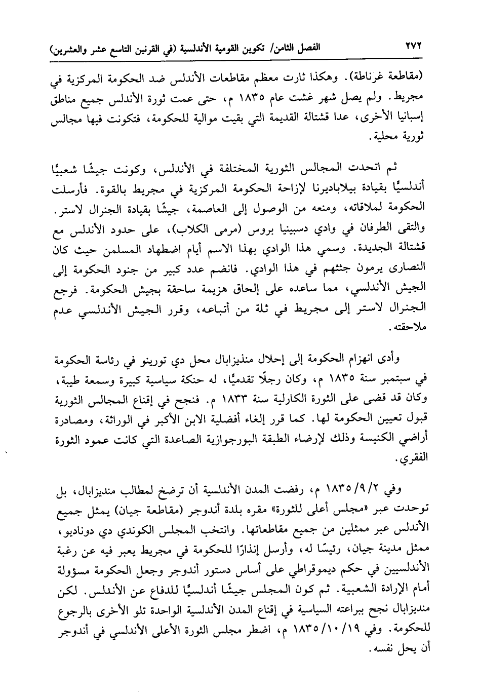 (مقاطعة غرناطة). وهكذا ثارت معظم مقاطعات الأندلس ضد الحكومة المركزية في مجريط. ولم يصل شهر غشت عام 1835 م، حتى عمت ثورة الأندلس جميع مناطق إسبانيا الأخرى، عدا قشتالة القديمة التي بقيت موالية للحكومة، فتكونت فيها مجالس ثورية محلية.