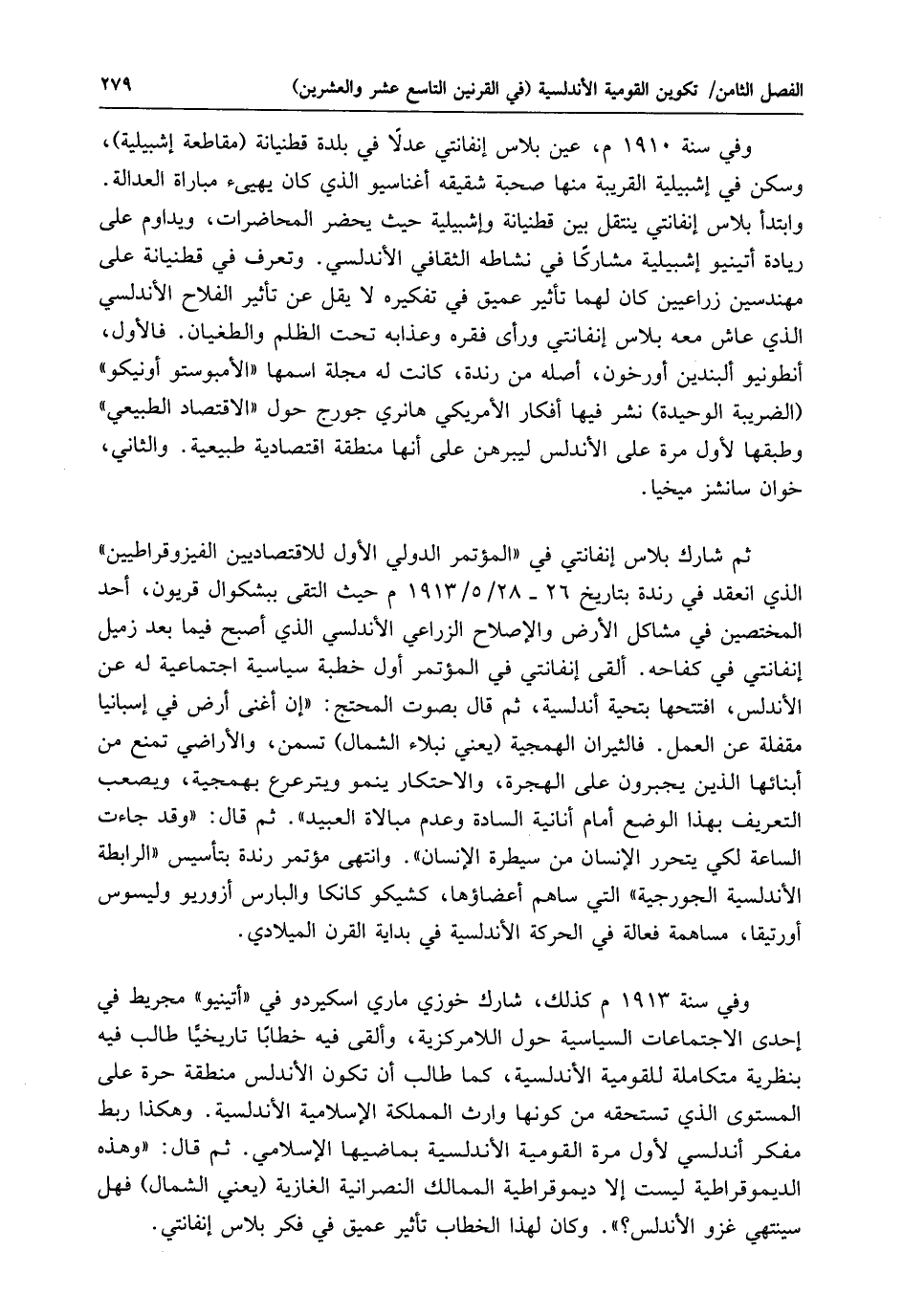 وفي سنة 1913 م كذلك، شارك خوزي ماري اسكيردو في "أتينيو" مجريط في إحدى الاجتماعات السياسية حول اللامركزية، وألقى فيه خطابًا تاريخيًّا طالب فيه بنظرية متكاملة للقومية الأندلسية، كما طالب أن تكون الأندلس منطقة حرة على المستوى الذي تستحقه من كونها وارث المملكة الإسلامية الأندلسية. وهكذا ربط مفكر أندلسي لأول مرة القومية الأندلسية بماضيها الإسلامي. ثم قال: "وهذه الديموقراطية ليست إلا ديموقراطية الممالك النصرانية الغازية (يعني الشمال) فهل سينتهي غزو الأندلس؟ ". وكان لهذا الخطاب تأثير عميق في فكر بلاس إنفانتي.