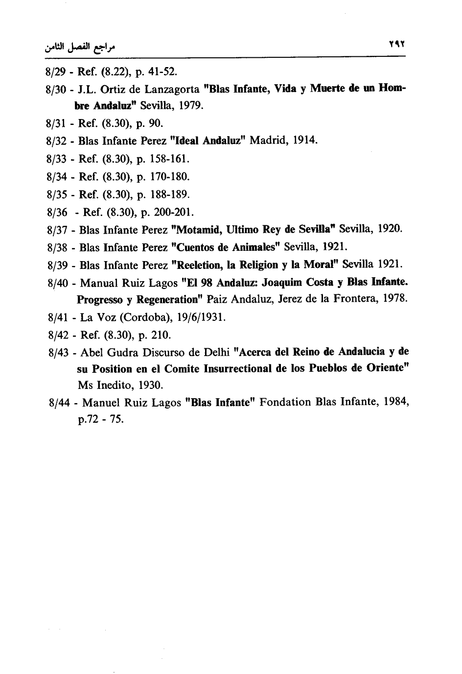 8 / 44 - Manuel Ruiz Lagos "Blas Infante" Fondation Blas Infante, 1984, p. 72-75.
