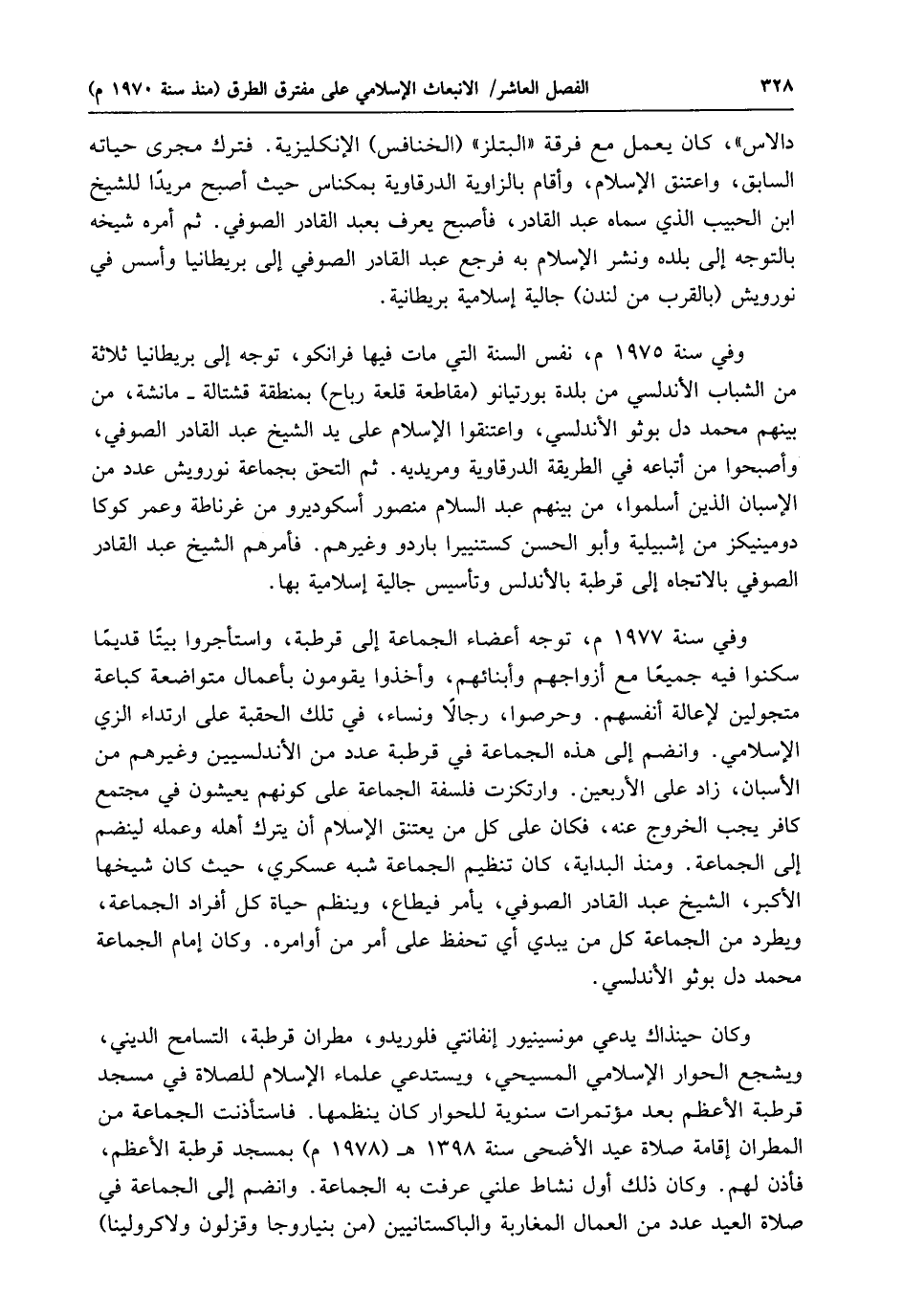 وفي سنة 1975 م، نفس السنة التي مات فيها فرانكو، توجه إلى بريطانيا ثلاثة من الشباب الأندلسي من بلدة بورتيانو (مقاطعة قلعة رباح) بمنطقة قشتالة - مانشة، من بينهم محمد دل بوثو الأندلسي، واعتنقوا الإسلام على يد الشيخ عبد القادر الصوفي، وأصبحوا من أتباعه في الطريقة الدرقاوية ومريديه. ثم التحق بجماعة نورويش عدد من الإسبان الذين أسلموا، من بينهم عبد السلام منصور أسكوديرو من غرناطة وعمر كوكا دومينيكز من إشبيلية وأبو الحسن كستنييرا باردو وغيرهم. فأمرهم الشيخ عبد القادر الصوفي بالاتجاه إلى قرطبة بالأندلس وتأسيس جالية إسلامية بها.