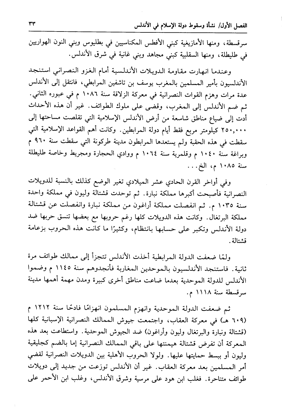 ثم ضم الأندلس إلى المغرب، وقضى على ملوك الطوائف. غير أن هذه الأحداث أدت إلى ضياع مناطق شاسعة من أرض الأندلس الإسلامية التي تقلصت مساحتها إلى 250.000 كيلومتر مربع فقط أيام دولة المرابطين. وكانت أهم القواعد الإسلامية التي سقطت في هذه الحقبة ولم يستعدها المرابطون مدينة طركونة التي سقطت سنة 960 م وبراغة شة 1040 م وقلمرية سنة 1064 م ووادي الحجارة ومجريط وخاصة طليطلة سنة 1085 م، الخ ... وفي أواخر القرن الحادي عشر الميلادي تغير الوضع كذلك بالنسبة للدويلات النصرانية فأصبحت أكبرها مملكة نبارة. ثم توحدت قشتالة وليون في مملكة واحدة سنة 1035 م. ثم انفصلت مملكة أراغون من مملكة نبارة وانفصلت عن قشتالة مملكة البرتغال. وكانت هذه الدويلات كلها رغم حروبها مع بعضها تنسق حربها ضد دولة الأندلس وتكبر على حسابها بانتظام، وكثيرًا ما كانت هذه الحروب بزعامة قشتالة.