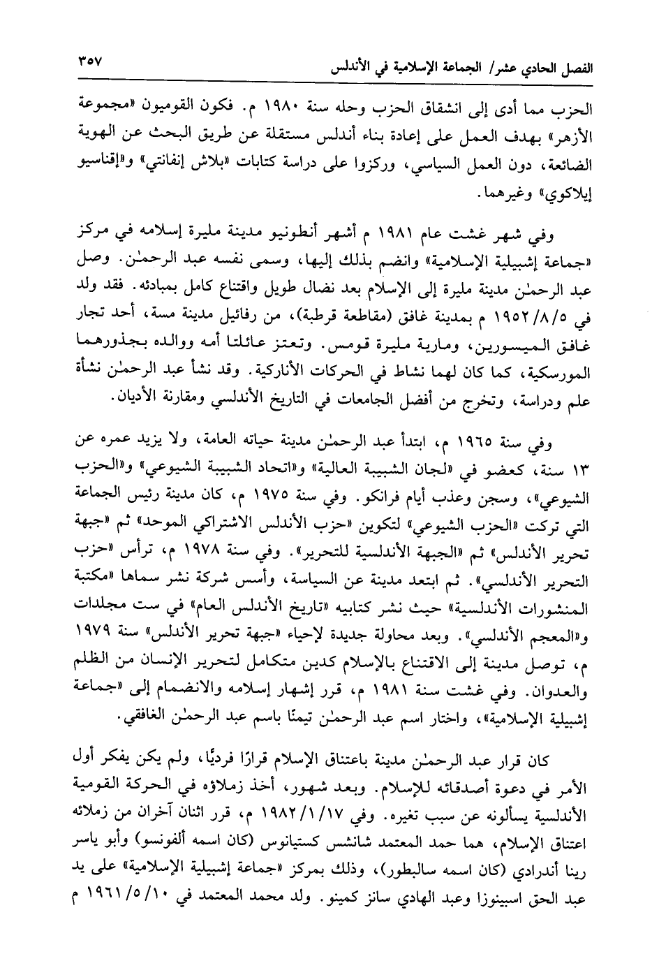 الحزب مما أدى إلى انشقاق الحزب وحله سنة 1980 م. فكوّن القوميون "مجموعة الأزهر" بهدف العمل على إعادة بناء أندلس مستقلة عن طريق البحث عن الهوية الضائعة، دون العمل السياسي، وركزوا على دراسة كتابات "بلاس إنفانتي" و"إقناسيو