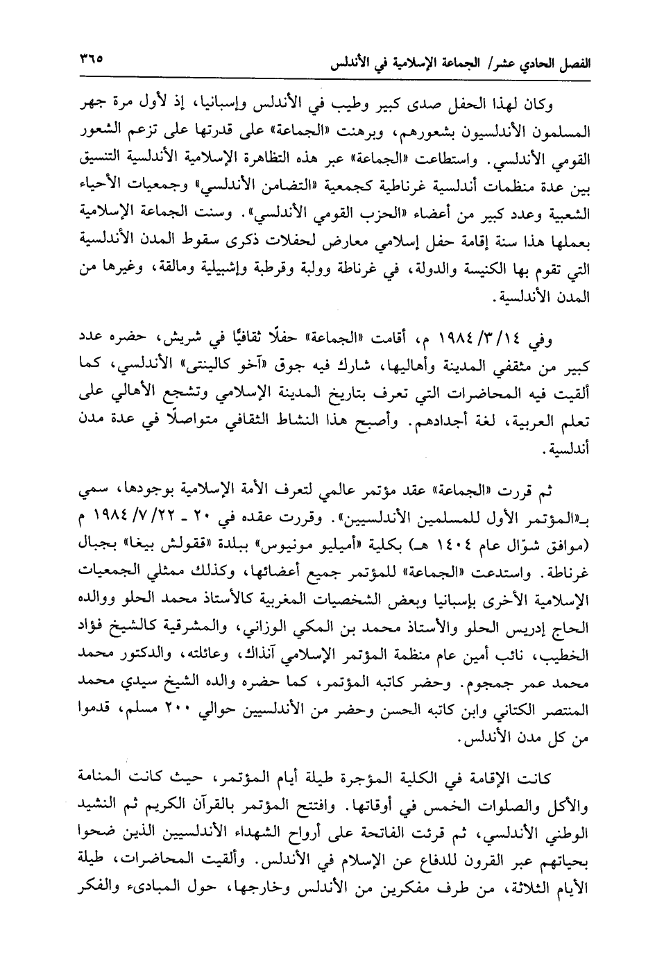 ثم قررت "الجماعة" عقد مؤتمر عالمي لتعرف الأمة الإسلامية بوجودها، سمّي بـ "المؤتمر الأول للمسلمين الأندلسيين". وقررت عقده في 20 - 22/ 7/ 1984 م (موافق شوّال عام 1404 هـ) بكلية "أميليو مونيوس" ببلدة "ققولش بيغا" بجبال غرناطة. واستدعت "الجماعة" للمؤتمر جميع أعضائها، وكذلك ممثلي الجمعيات الإسلامية الأخرى بإسبانيا وبعض الشخصيات المغربية كالأستاذ محمد الحلو ووالده الحاج إدريس الحلو والأستاذ محمد بن المكي الوزاني، والمشرقية كالشيخ فؤاد الخطيب، نائب أمين عام منظمة المؤتمر الإسلامي آنذاك، وعائلته، والدكتور محمد محمد عمر جمجوم. وحضر كاتبه المؤتمر، كما حضره والده الشيخ سيدي محمد المنتصر الكتاني وابن كاتبه الحسن وحضر من الأندلسيين حوالي 200 مسلم، قدموا من كل مدن الأندلس.