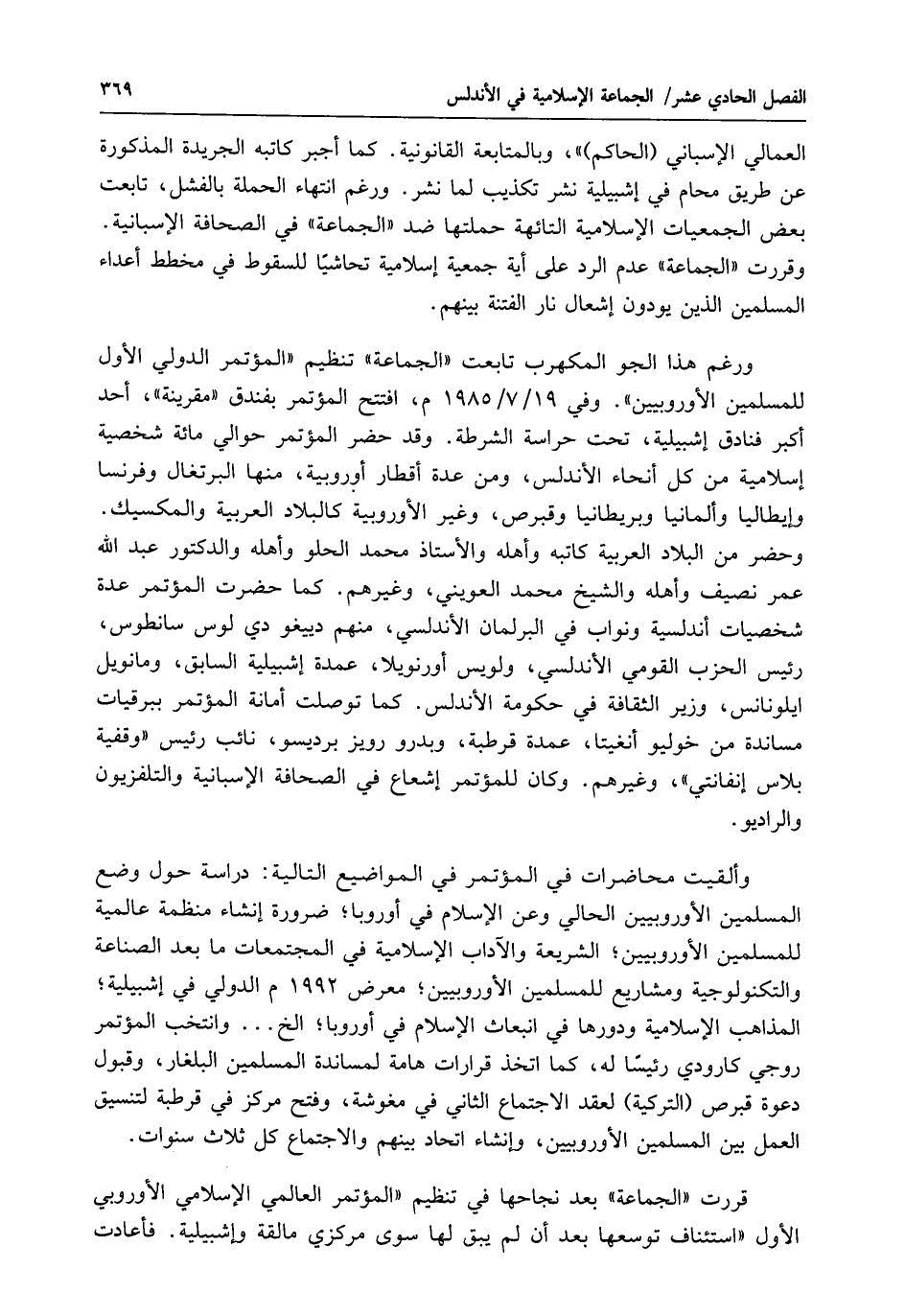 ورغم هذا الجو المكهرب تابعت "الجماعة" تنظيم "المؤتمر الدولي الأول للمسلمين الأوروبيين". وفي 19/ 7 / 1985 م، افتتح المؤتمر بفندق "مقرينة"، أحد أكبر فنادق إشبيلية، تحت حراسة الشرطة. وقد حضر المؤتمر حوالي مائة شخصية إسلامية من كل أنحاء الأندلس، ومن عدة أقطار أوروبية، منها البرتغال وفرنسا وإيطاليا وألمانيا وبريطانيا وقبرص، وغير الأوروبية كالبلاد العربية والمكسيك.