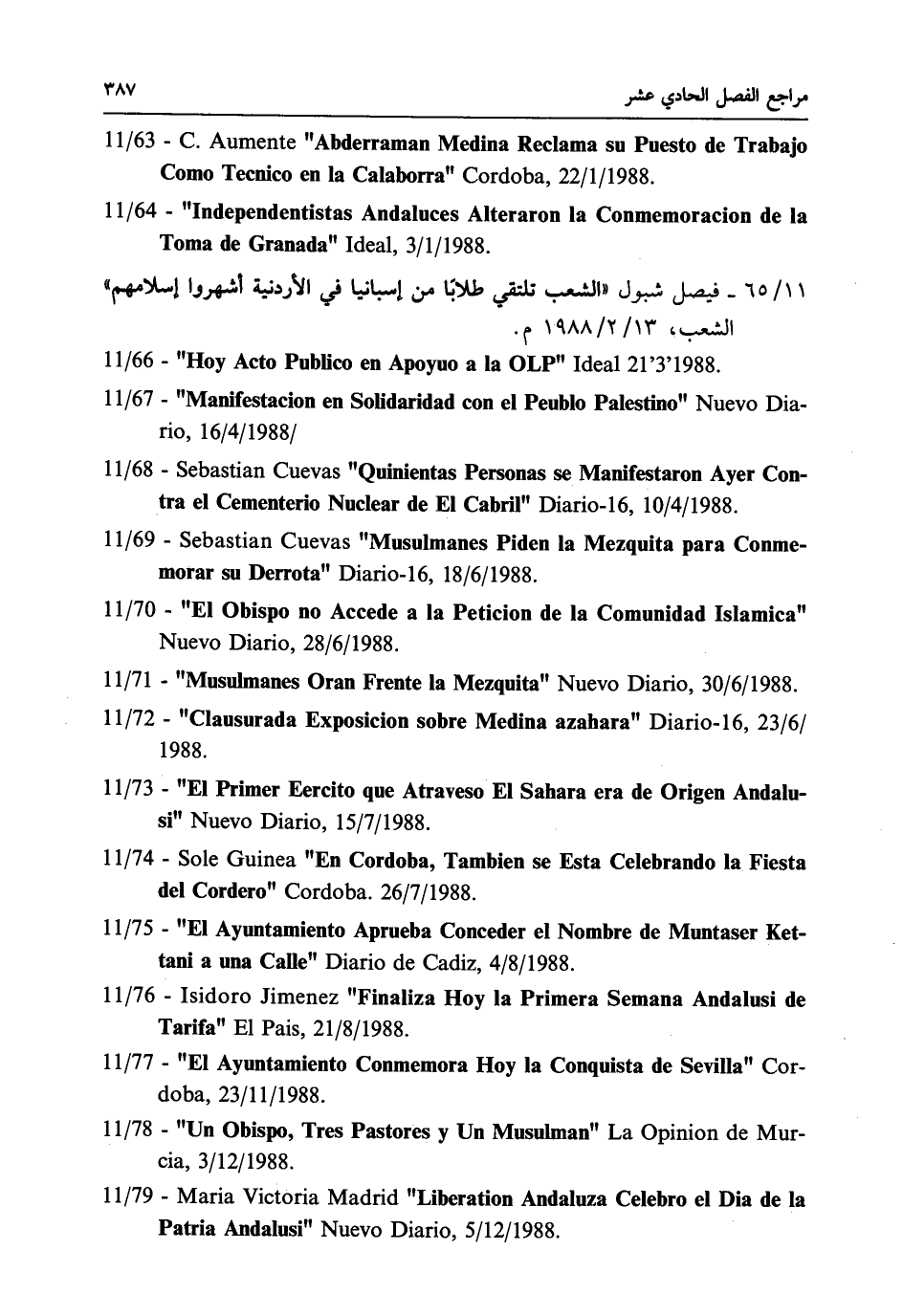 11 / 78 - "Un Obispo, Tres Pastores y Un Musulman" La Opinion de Mur - cia, 3 / 12 / 1988.