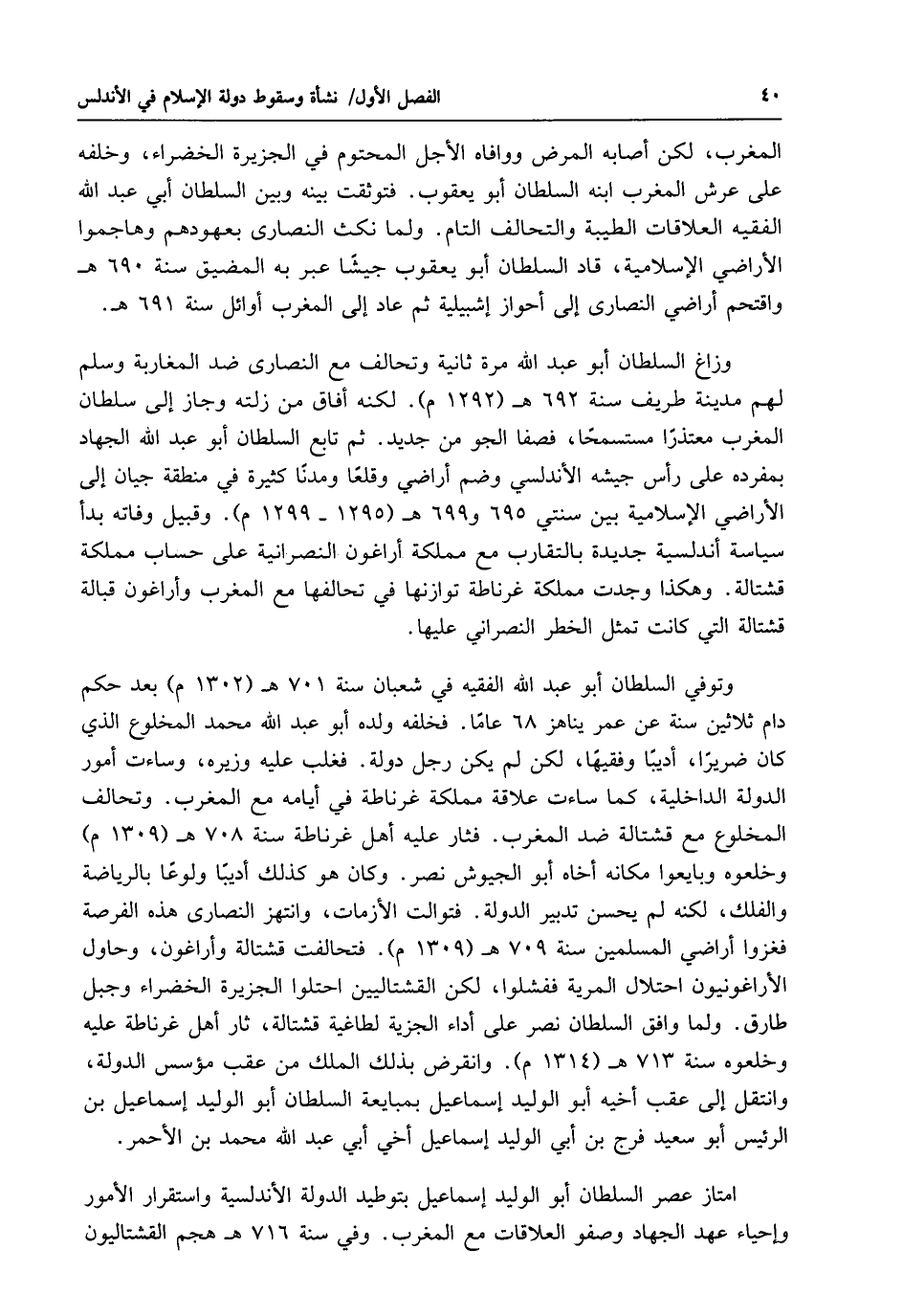 المغرب، لكن أصابه المرض ووافاه الأجل المحتوم في الجزيرة الخضراء، وخلفه على عرش المغرب ابنه السلطان أبو يعقوب. فتوثقت بينه وبين السلطان أبي عبد الله الفقيه العلاقات الطيبة والتحالف التام. ولما نكث النصارى بعهودهم وهاجموا الأراضي الإسلامية، قاد السلطان أبو يعقوب جيشًا عبر به المضيق سنة 690 هـ واقتحم أراضي النصارى إلى أحواز إشبيلية ثم عاد إلى المغرب أوائل سنة 691 هـ.
