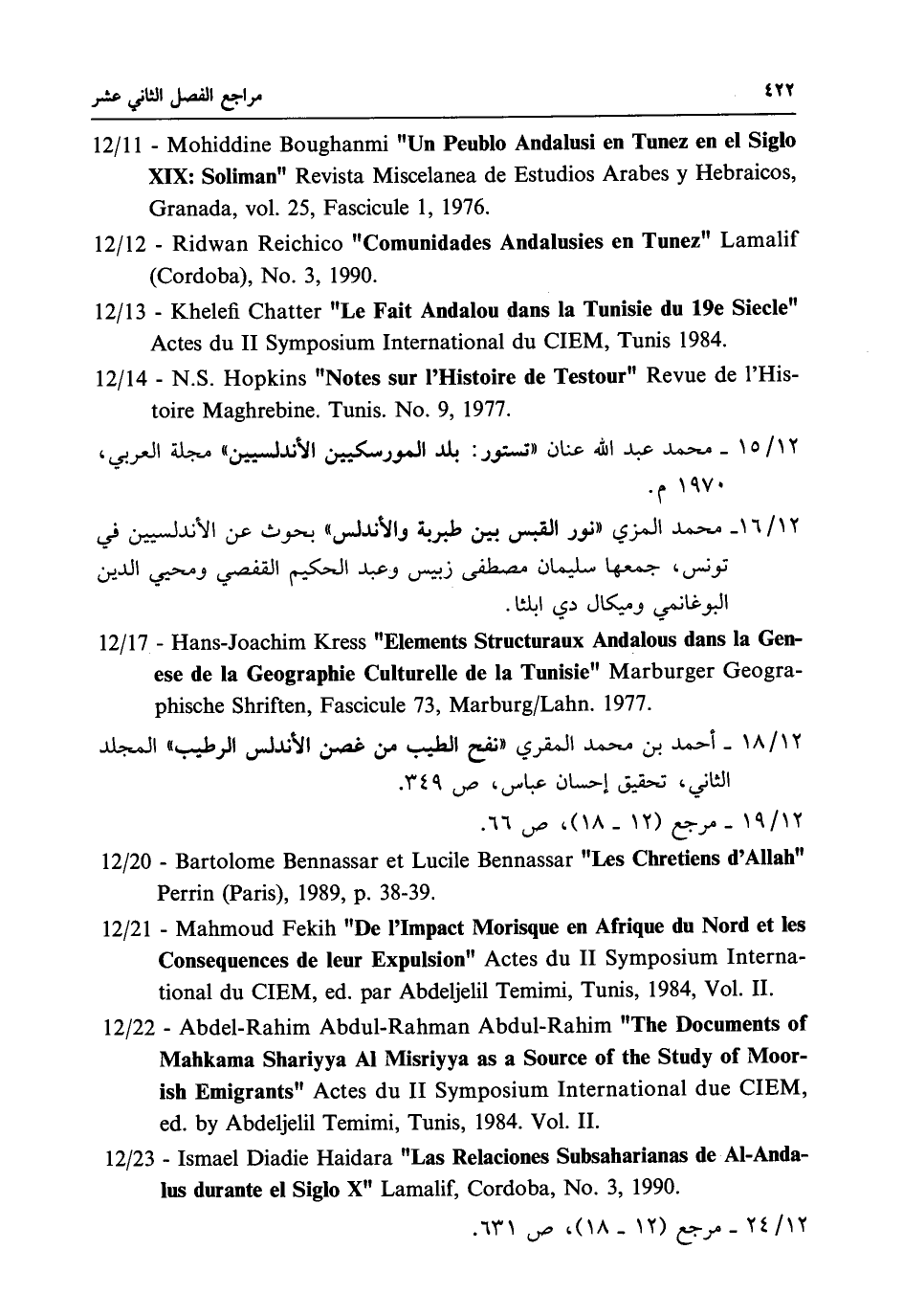12/ 11 - Mohiddine Boughanmi "Un Peublo Andalusi en Tunez en el Siglo XIX: Soliman" Revista Miscelanea de Estudios Arabes y Hebraicos, Granada, vol. 25, Fascicule 1, 1976.