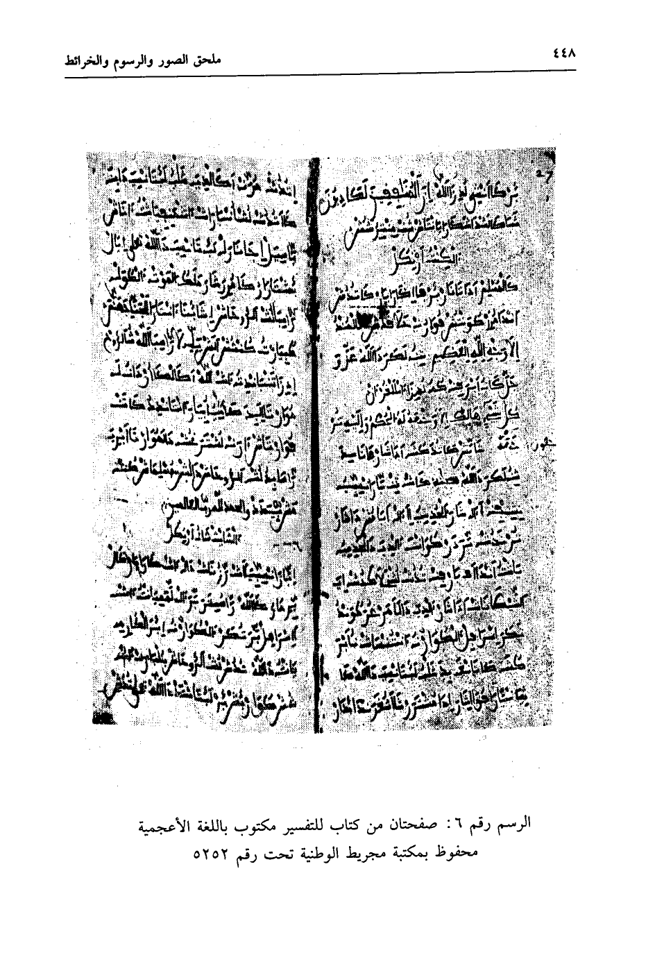 الرسم رقم 6: صفحتان من كتاب للتفسير مكتوب باللغة الأعجمية محفوظ بمكتبة مجريط الوطنية تحت رقم 5252
