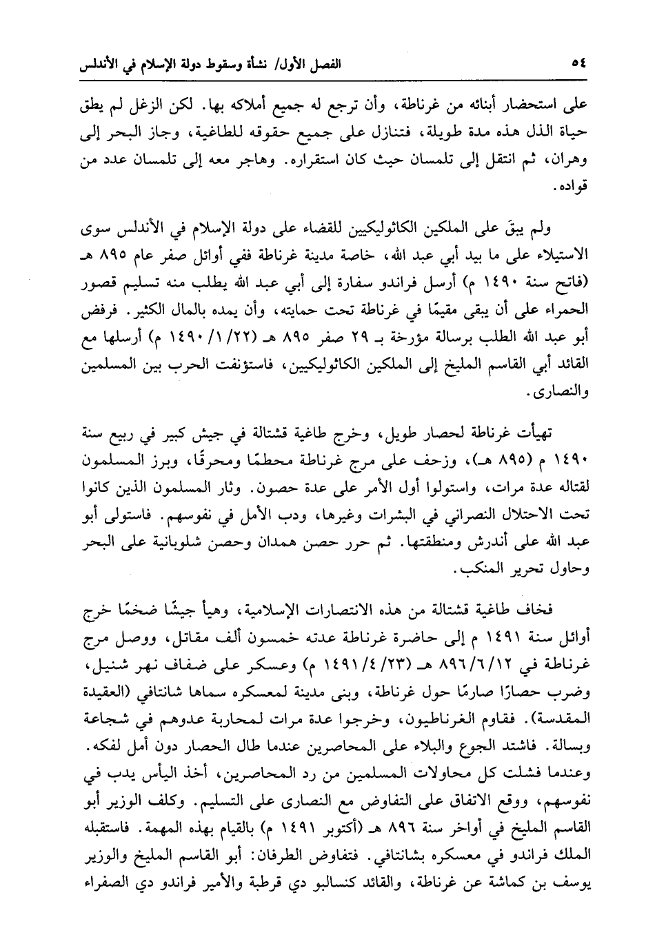 فخاف طاغية قشتالة من هذه الانتصارات الإسلامية، وهيأ جيشًا ضخمًا خرج أوائل سنة 1491 م إلى حاضرة غرناطة عدته خمسون ألف مقاتل، ووصل مرج غرناطة في 12/ 6 / 896 هـ (23/ 4 / 1491 م) وعسكر على ضفاف نهر شنيل، وضرب حصارًا صارمًا حول غرناطة، وبنى مدينة لمعسكره سماها شانتافي (العقيدة المقدسة). فقاوم الغرناطيون، وخرجوا عدة مرات لمحاربة عدوهم في شجاعة وبسالة. فاشتد الجوع والبلاء على المحاصرين عندما طال الحصار دون أمل لفكه.
