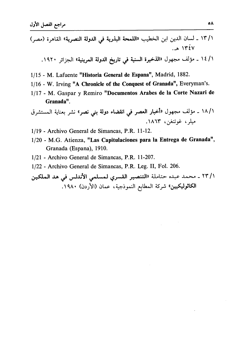 1 / 23 - محمد عبده حتاملة "التنصير القسري لمسلمي الأندلس في عهد الملكين الكاثوليكيين" شركة المطابع النموذجية، عمان (الأردن) 1980.