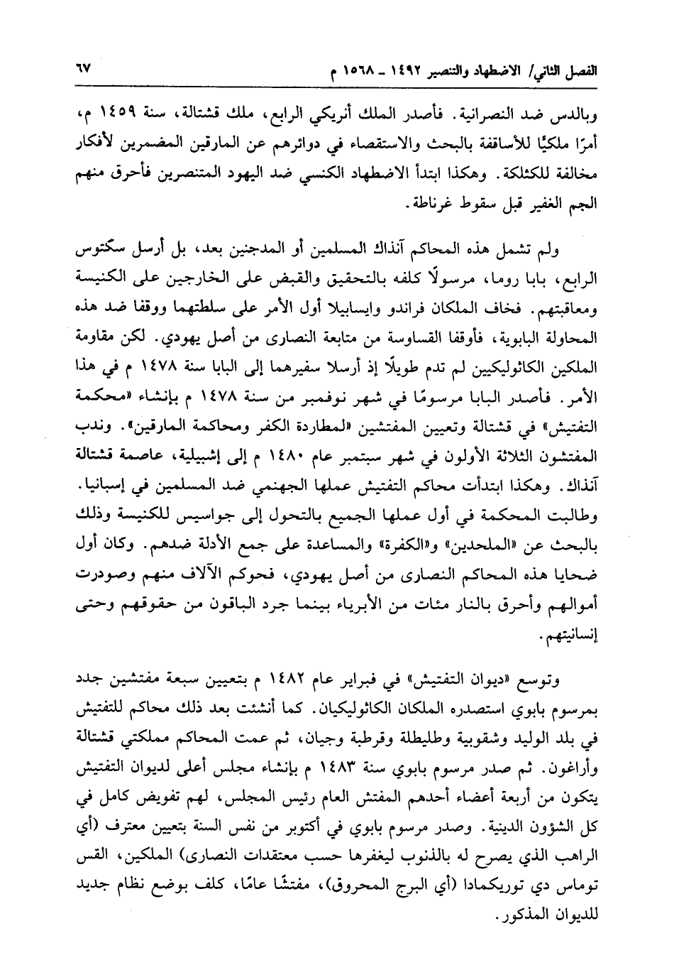 وبالدس ضد النصرانية. فأصدر الملك أنريكي الرابع، ملك قشتالة، سنة 1459 م، أمرًا ملكيًّا للأساقفة بالبحث والاستقصاء في دوائرهم عن المارقين المضمرين لأفكار مخالفة للكثلكة. وهكذا ابتدأ الاضطهاد الكنسي ضد اليهود المتنصرين فأحرق منهم الجم الغفير قبل سقوط غرناطة.