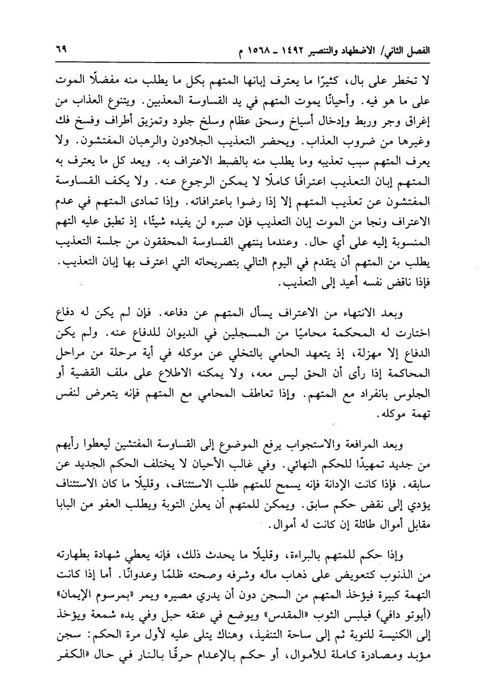 فإذا ناقض نفسه أعيد إلى التعذيب.
