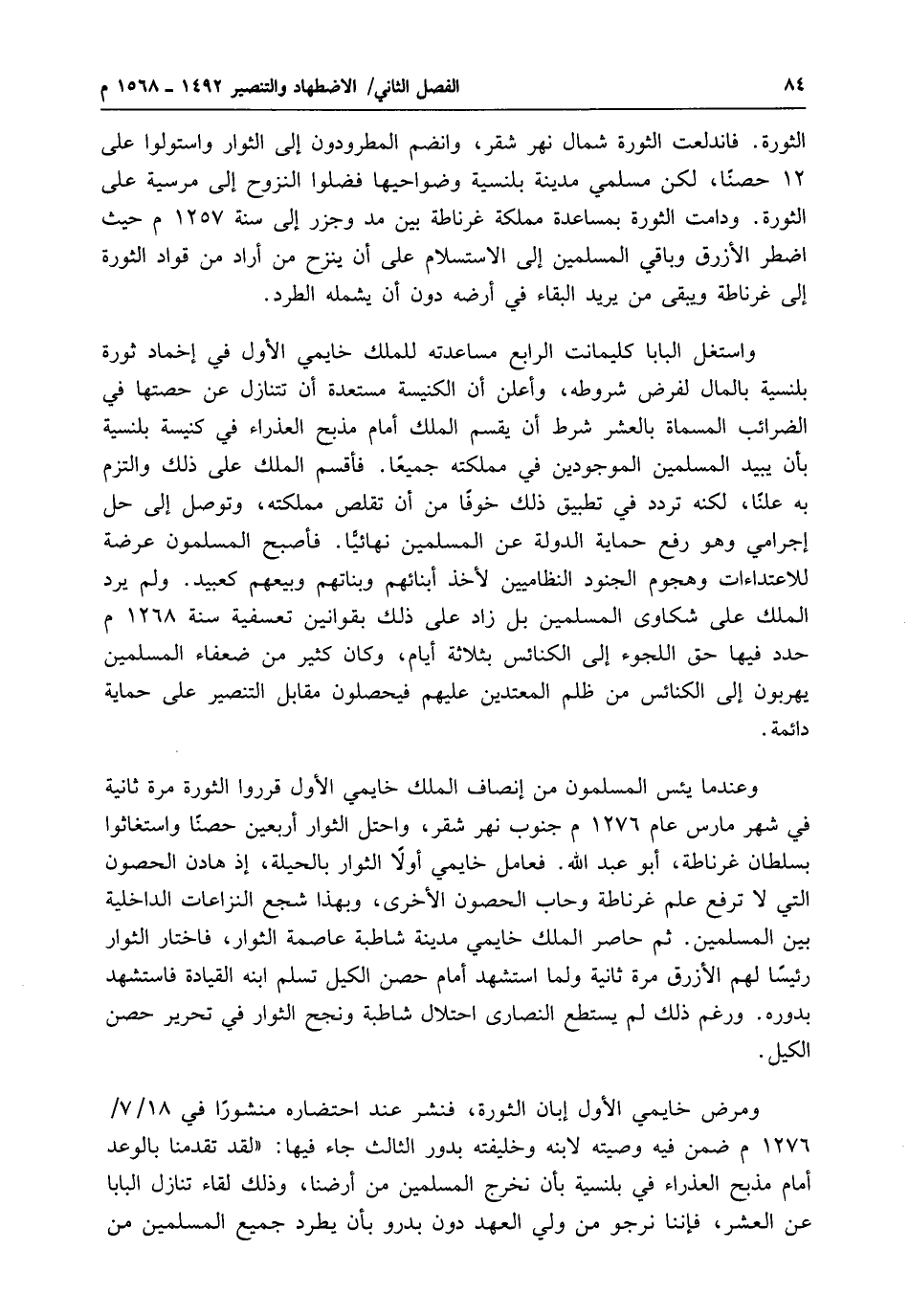 ومرض خايمي الأول إبان الثورة، فنشر عند احتضاره منشورًا في 18/ 7 / 1276 م ضمن فيه وصيته لابنه وخليفته بدرو الثالث جاء فيها: "لقد تقدمنا بالوعد أمام مذبح العذراء في بلنسية بأن نخرج المسلمين من أرضنا، وذلك لقاء تنازل البابا عن العشر، فإننا نرجو من ولي العهد دون بدرو بأن يطرد جميع المسلمين من