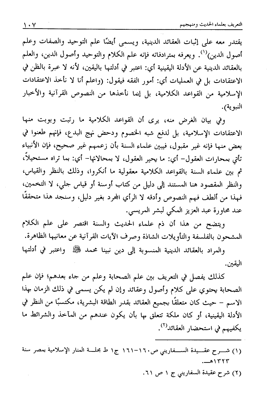 (1) شرح عقيدة السفاريني ص 160 - 161 ج 1 ط مجلة المنار الإسلامية مصر سنة 1323 هـ.