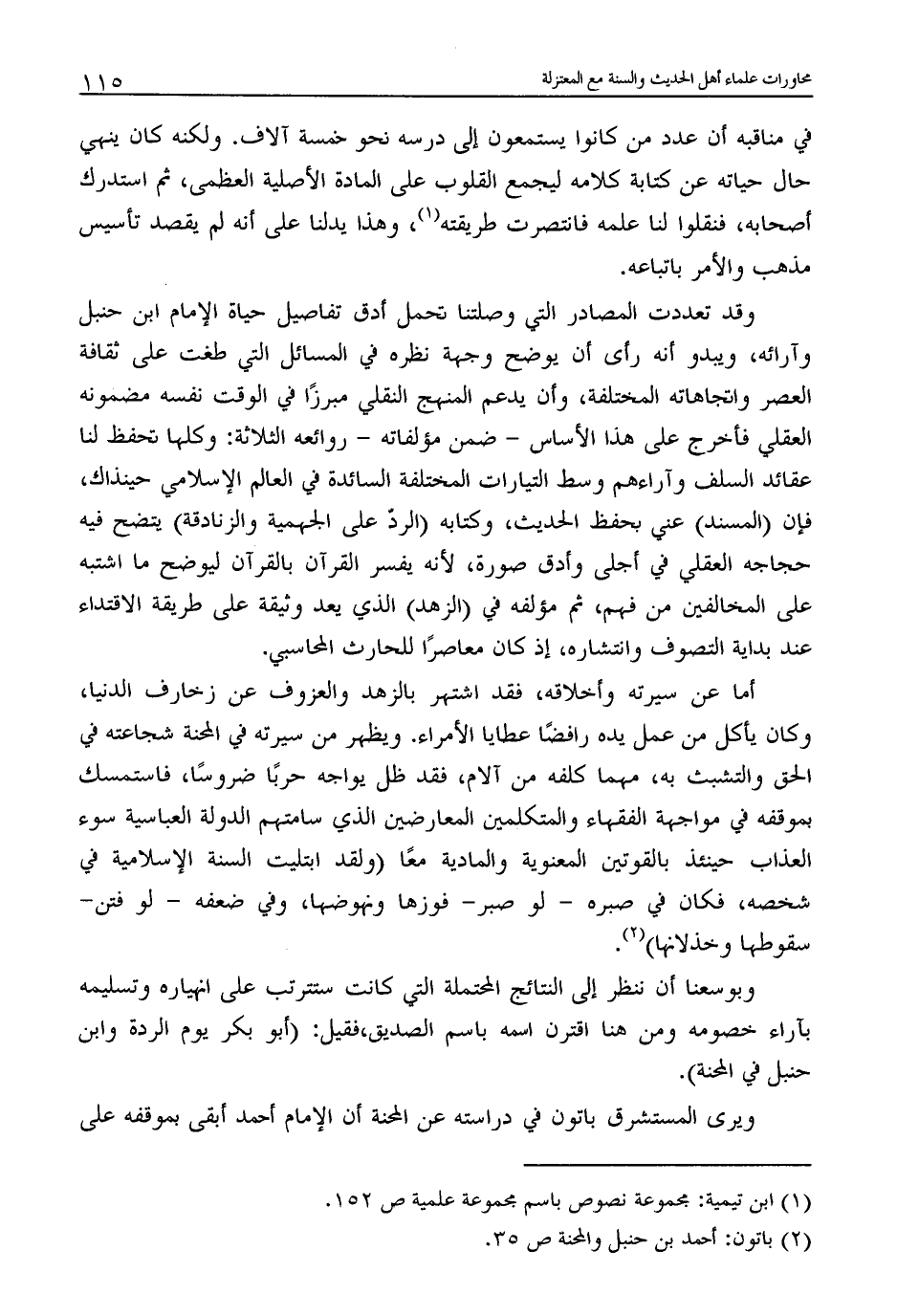 (2) باتون: أحمد بن حنبل والمحنة ص 35.