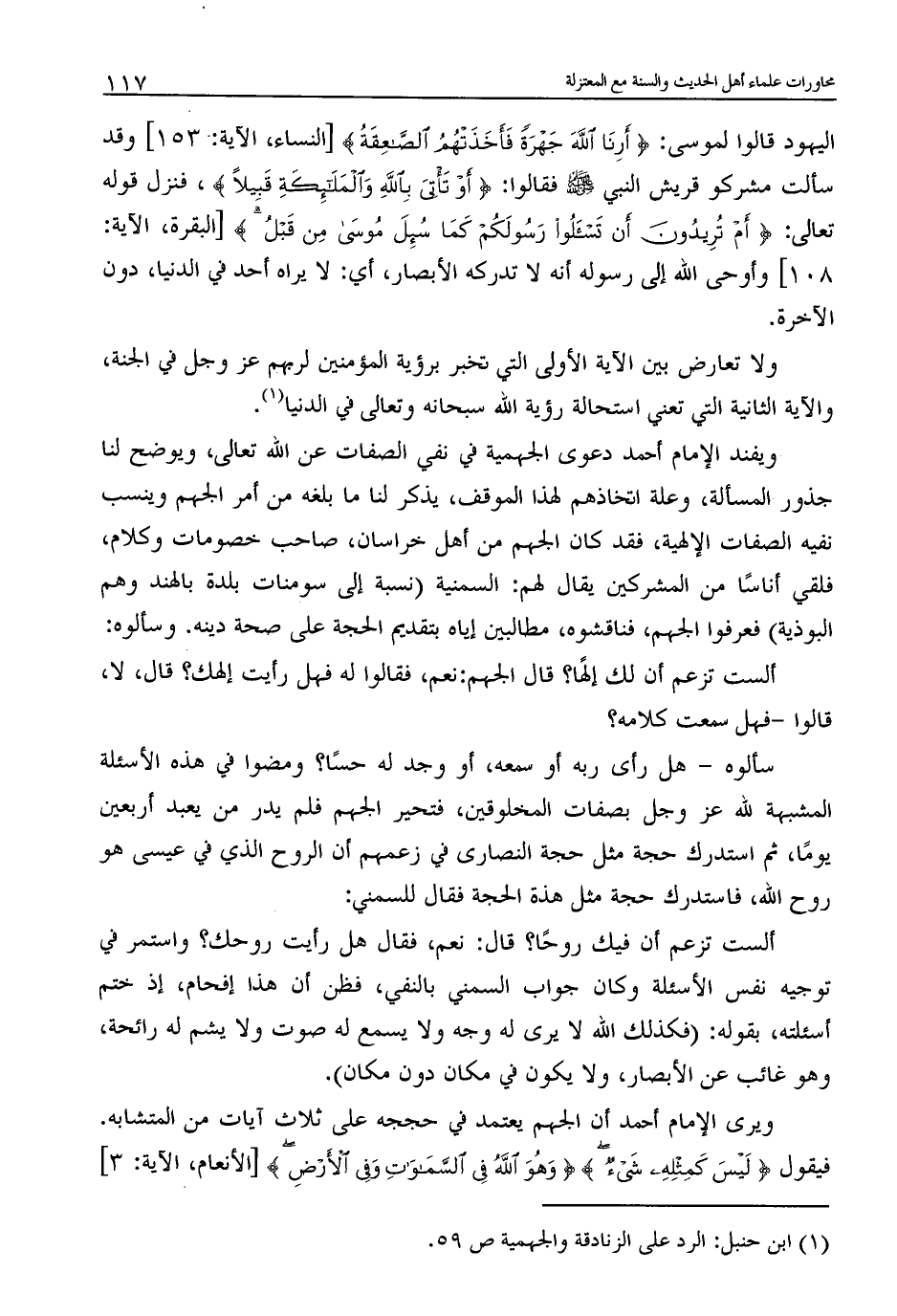 (1) ابن حنبل: الرد على الزنادقة والجهمية ص 59.