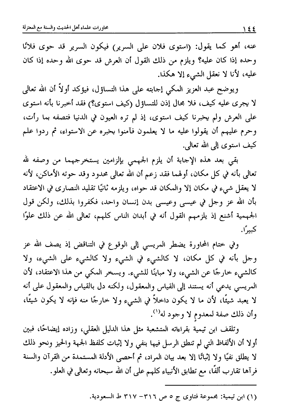 (1) ابن تيمية: مجموعة فتاوى ج 5 ص 316 - 317 ط السعودية.