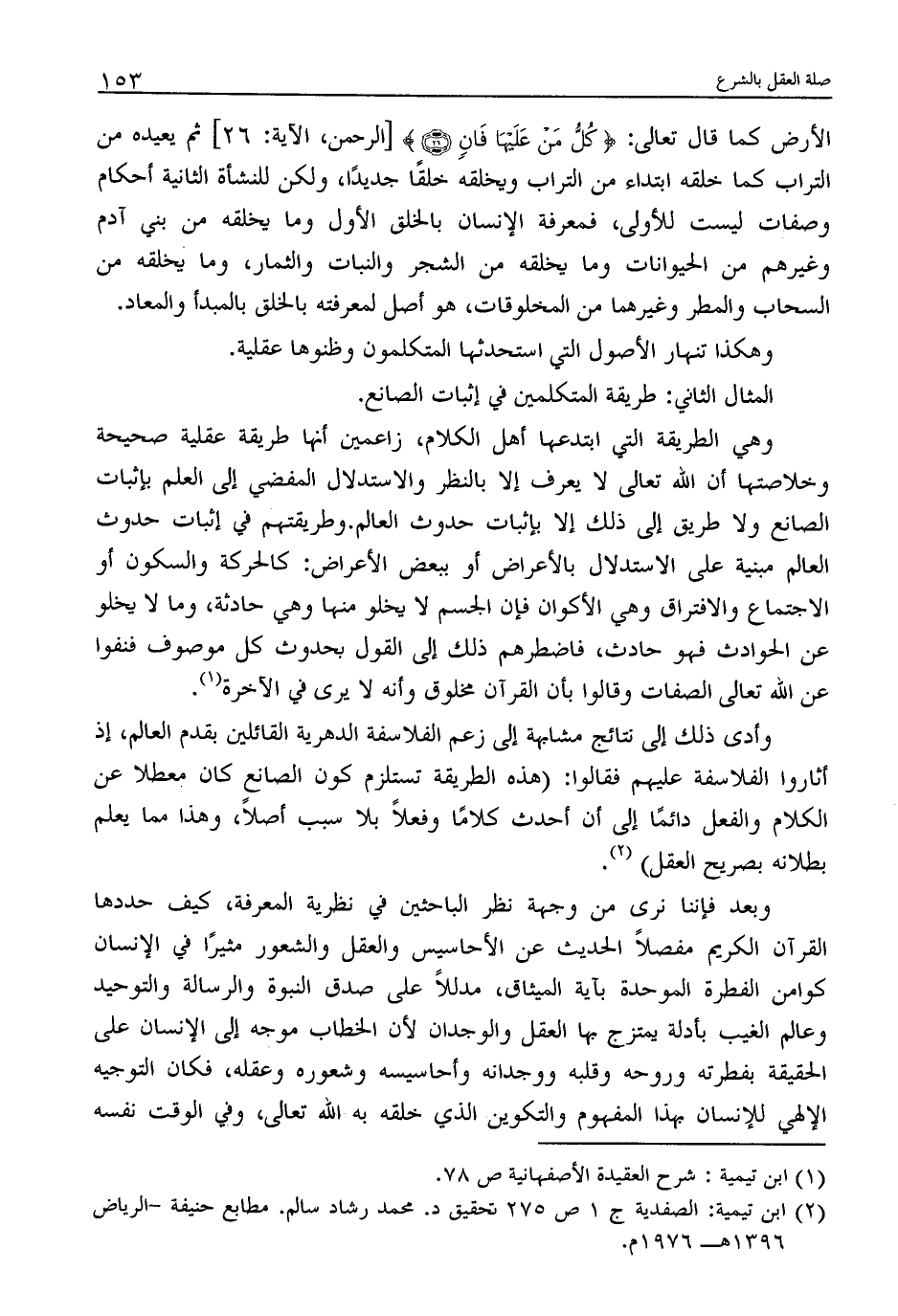 (2) ابن تيمية: الصفدية ج 1 ص 275 تحقيق د. محمد رشاد سالم. مطابع حنيفة - الرياض 1396 هـ 1976م.