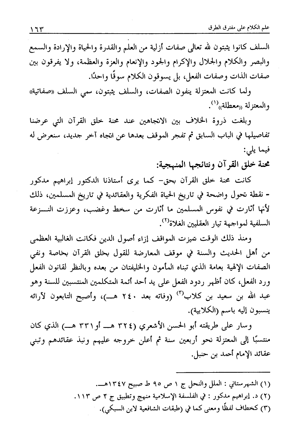 (1) الشهرستاني: الملل والنحل ج 1 ص 95 ط صبيح 1347 هـ.