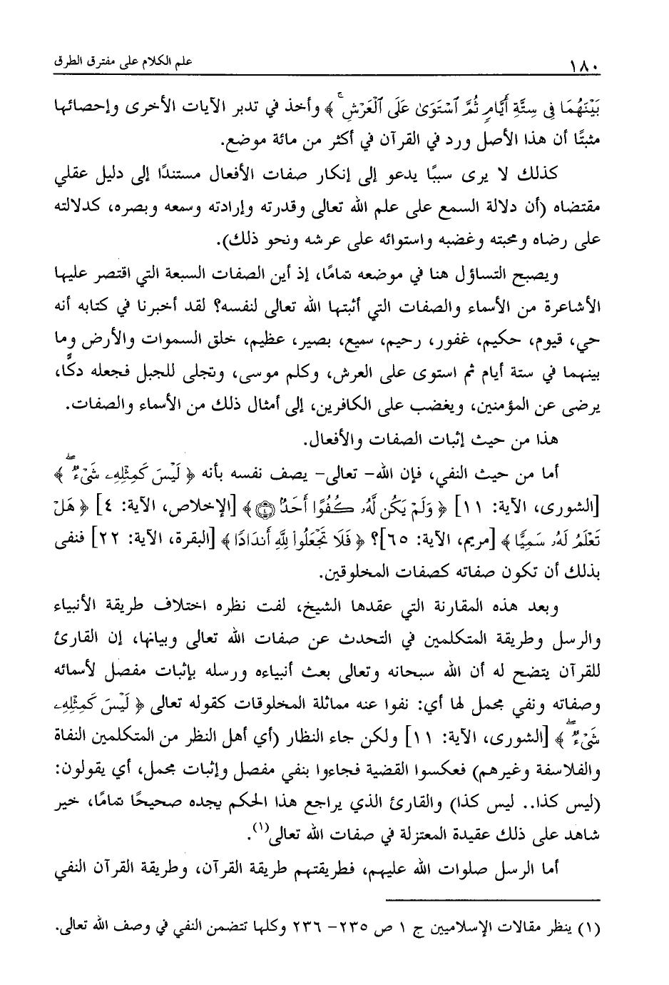 (1) ينظر مقالات الإسلاميين ج 1 ص 235 - 236 وكلها تتضمن النفي في وصف الله تعالى.