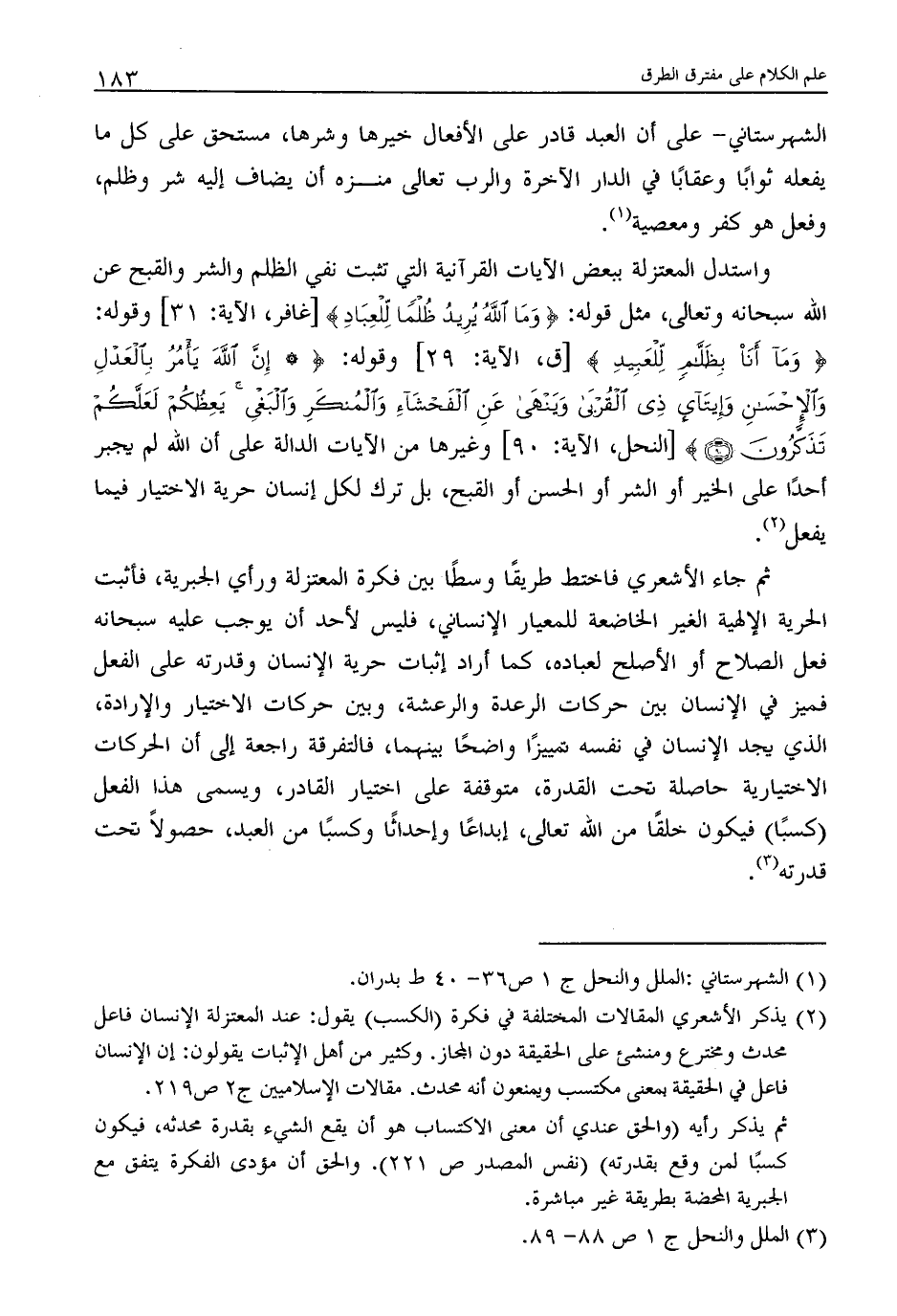 (1) الشهرستاني: الملل والنحل ج 1 ص 36 - 40 ط بدران.
