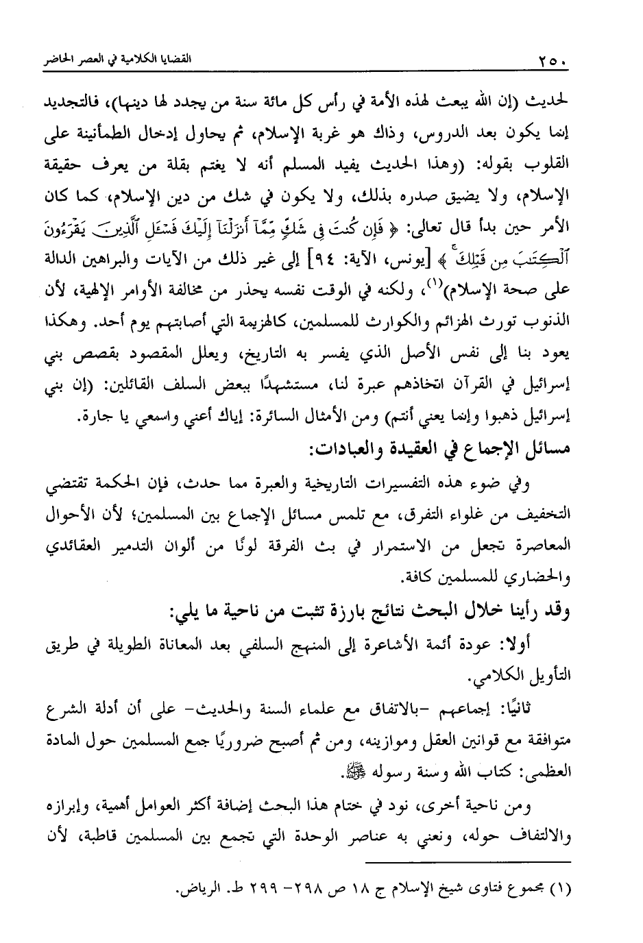 (1) مجموع فتاوى شيخ الإسلام ج 18 ص 298 - 299 ط. الرياض.