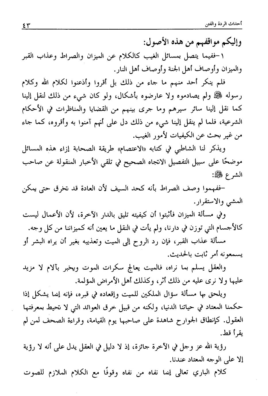 1 - ففيما يتصل بمسائل الغيب كالكلام عن الميزان والصراط وعذاب القبر والميزان وأوصاف أهل الجنة وأوصاف أهل النار.