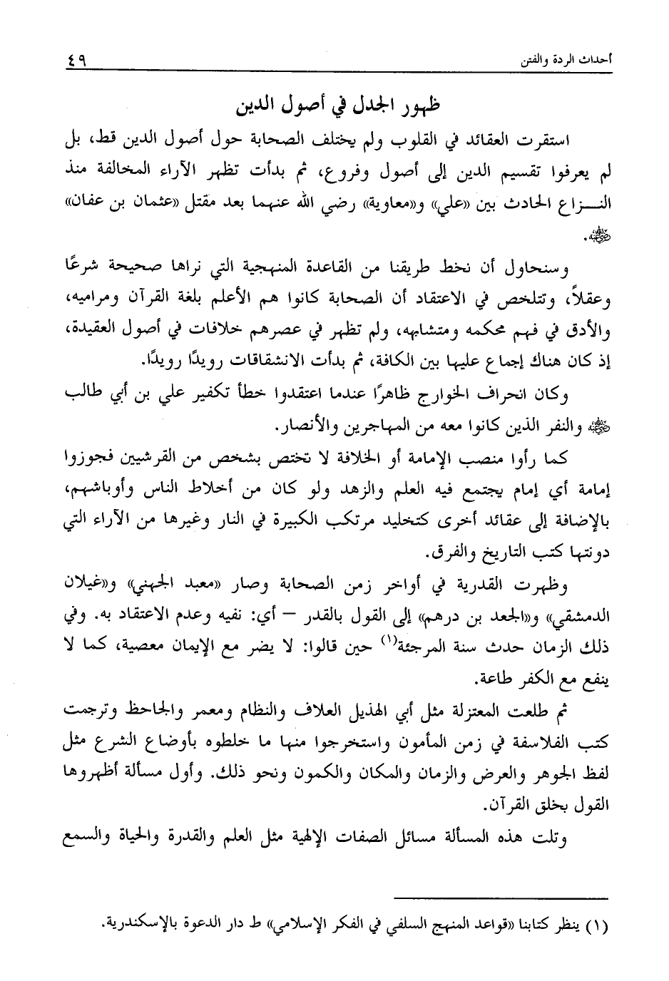 (1) ينظر كتابنا "قواعد المنهج السلفي في الفكر الإسلامي" ط دار الدعوة بالإسكندرية.