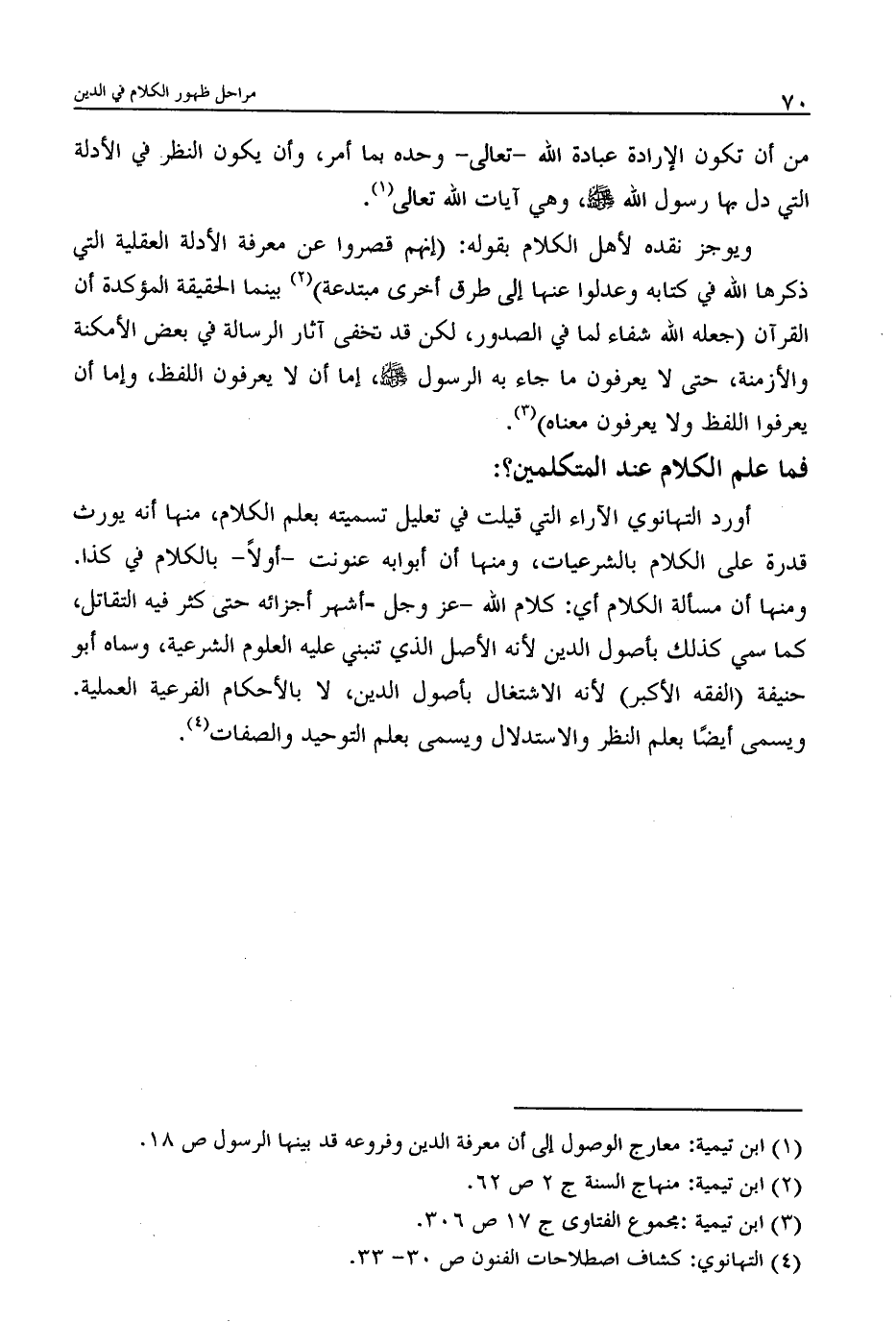 (4) التهانوي: كشاف اصطلاحات الفنون ص 30 - 33.