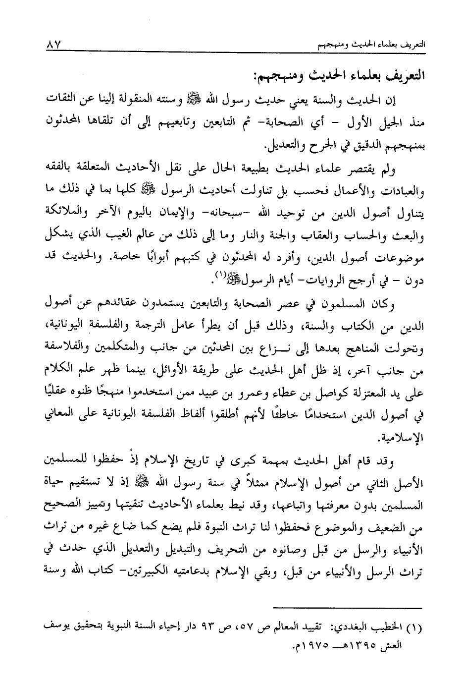 (1) الخطيب البغدادي: تقييد المعالم ص 57، ص 93 دار إحياء السنة النبوية بتحقيق يوسف العش 1395 هـ 1975 م.