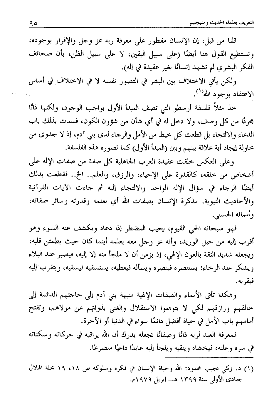 (1) د. زكي نجيب محمود: الله وحياة الإنسان في فكره وسلوكه ص 18، 19 مجلة الهلال جمادى الأولى سنة 1399 هـ إبريل 1979 م.
