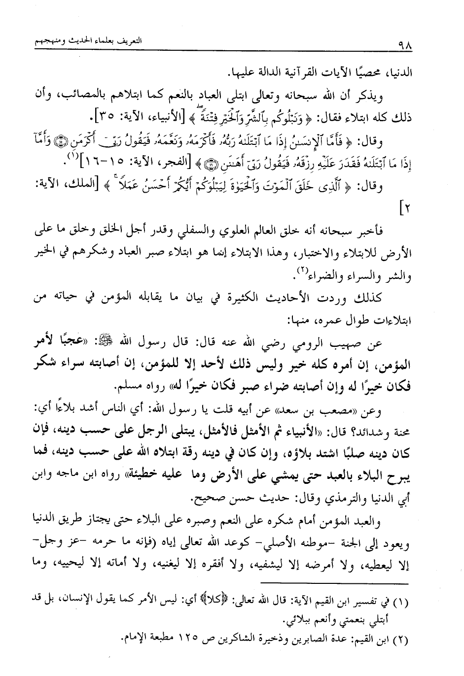 (2) ابن القيم: عدة الصابرين وذخيرة الشاكرين ص 125 مطبعة الإمام.