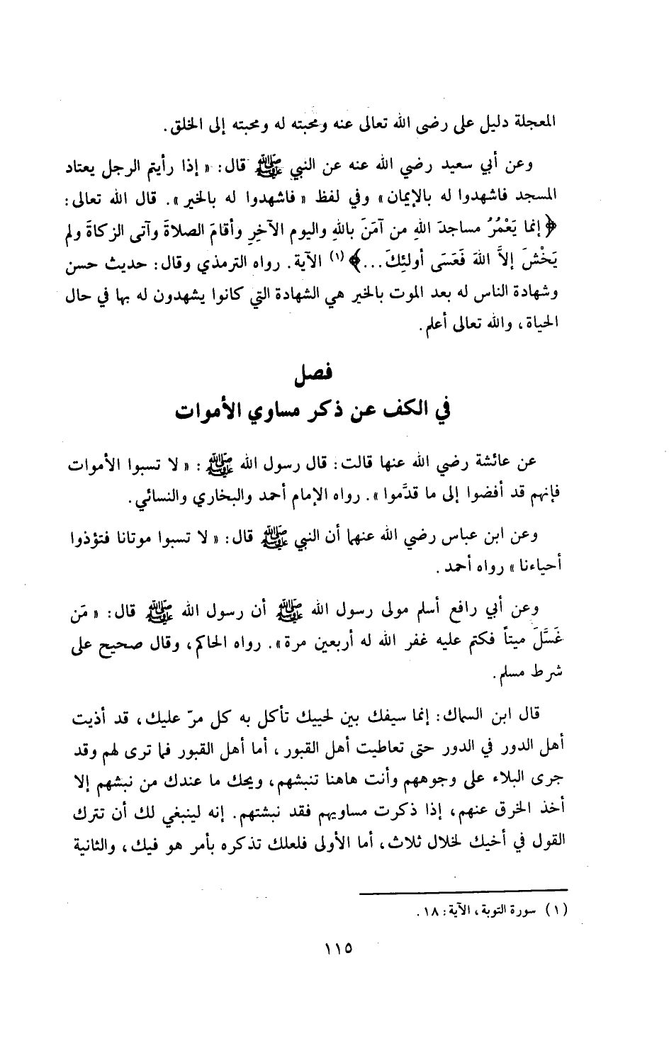 «عن عائشة ـ رضي الله عنها ـ قالت: قال رسول الله صلى الله عليه وسلم: لا تسبوا الأموات، فإنهم قد أفضوا إلى ما قدموا» .