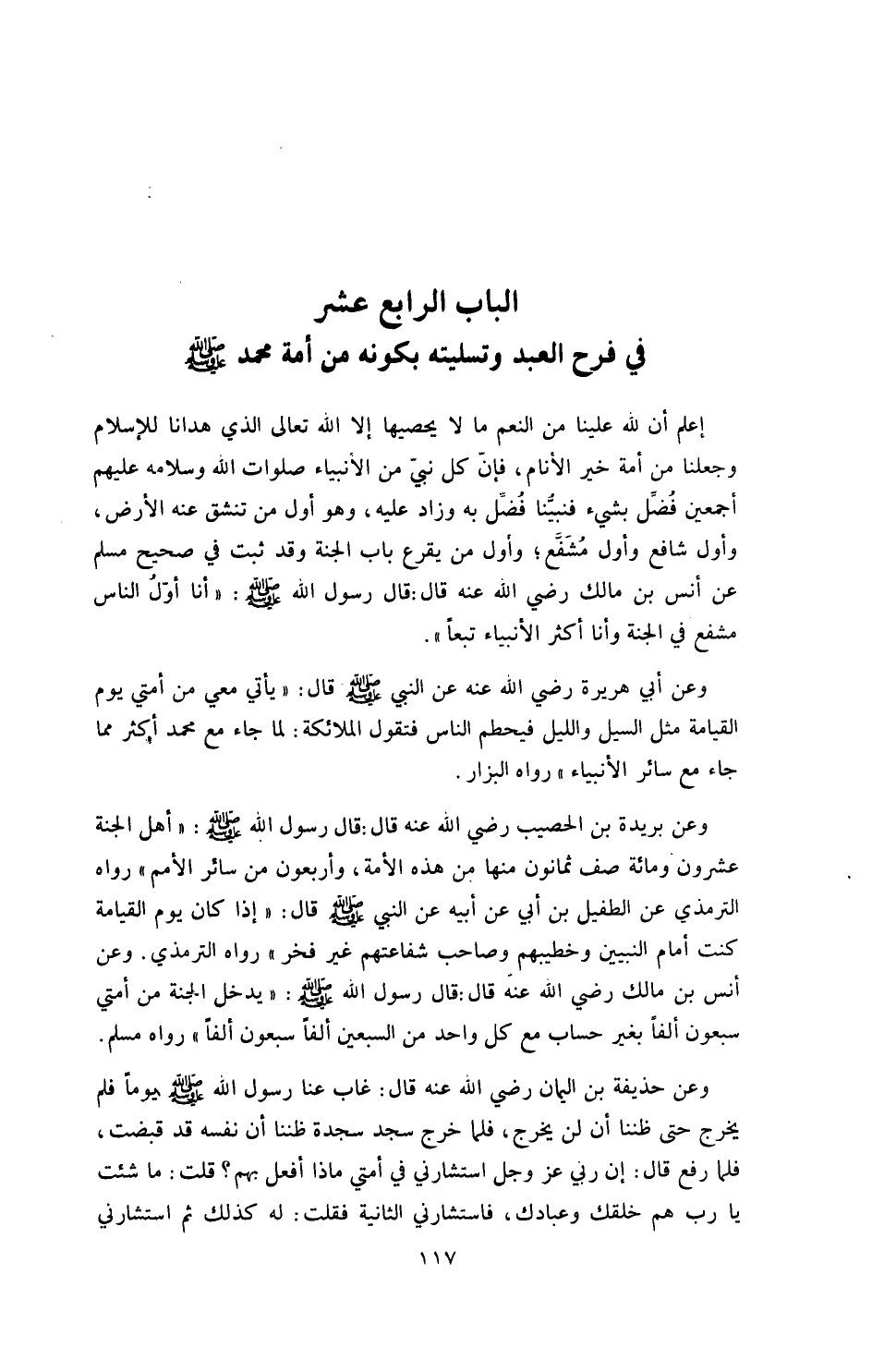 الباب الرابع عشر: في فرح العبد وتسليته بكونه من أمة محمد صلى الله عليه وسلم