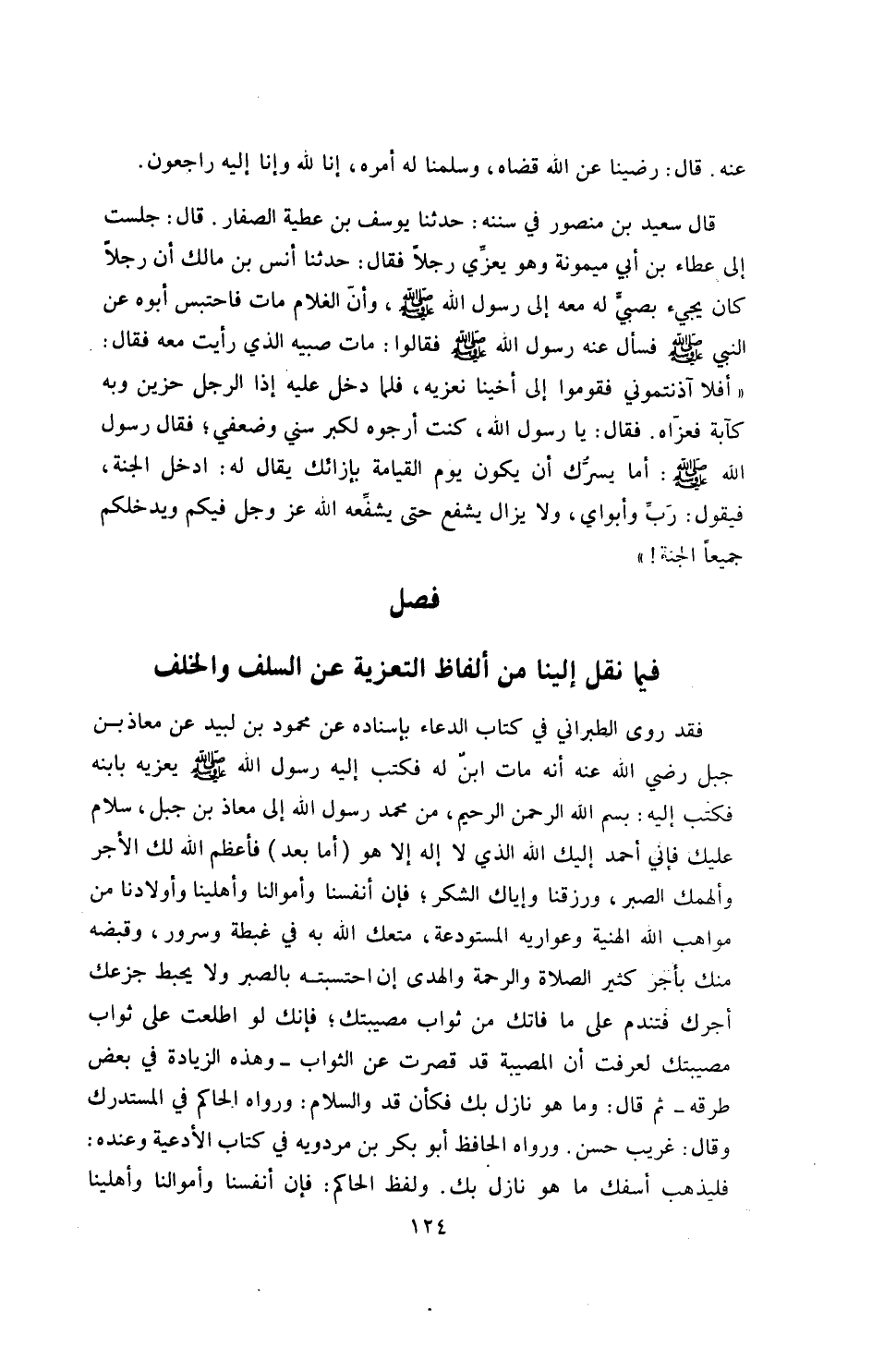 فصل ـ فيما نقل إلينا من ألفاظ التعزية عن السلف والخلف
