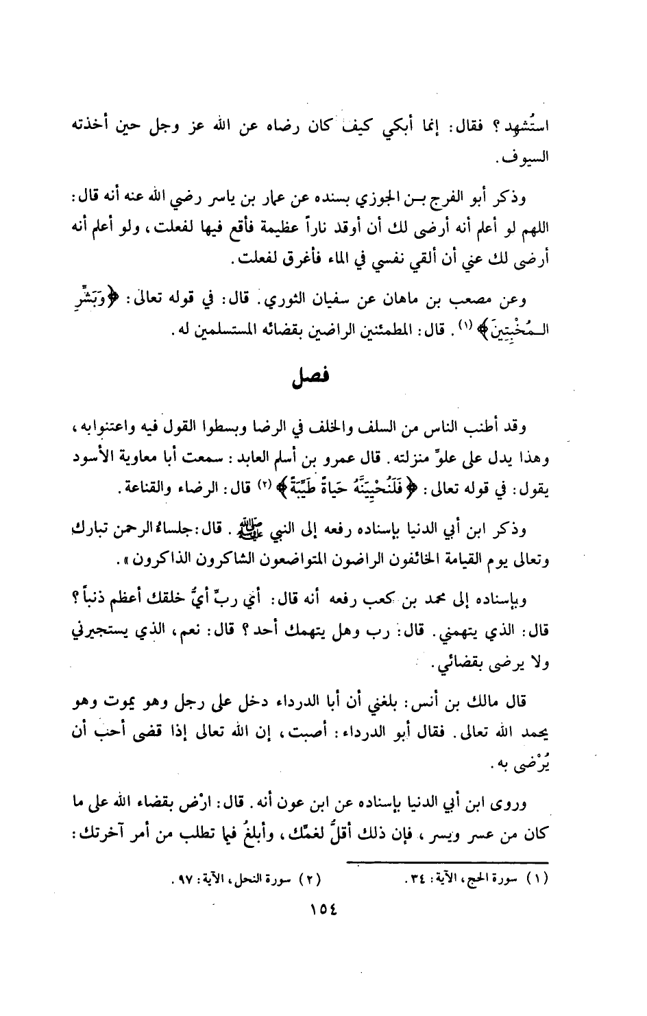 وقد أطنب الناس ـ من السلف والخلف ـ في الرضا، وبسطوا القول فيه، واعتنوا به وهذا يدل على علو منزلته.