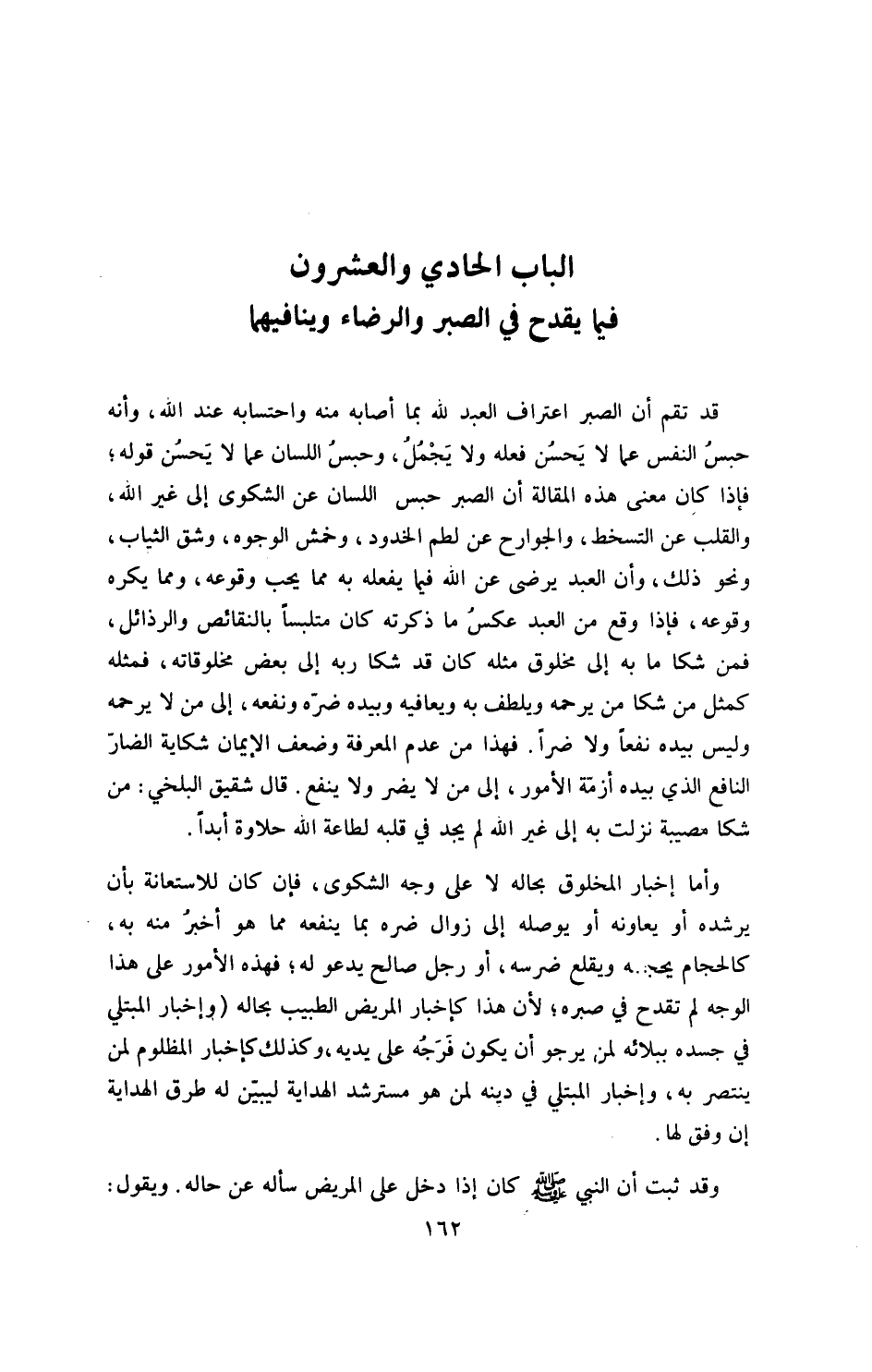 الباب الحادي والعشرون: فيما يقدح في الصبر والرضا وينافيهما