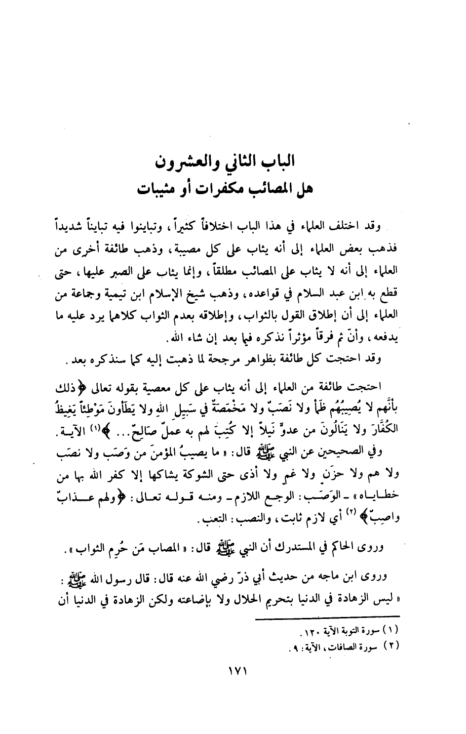 الباب الثاني والعشرون: هل المصائب مكفرات أم مثيبات