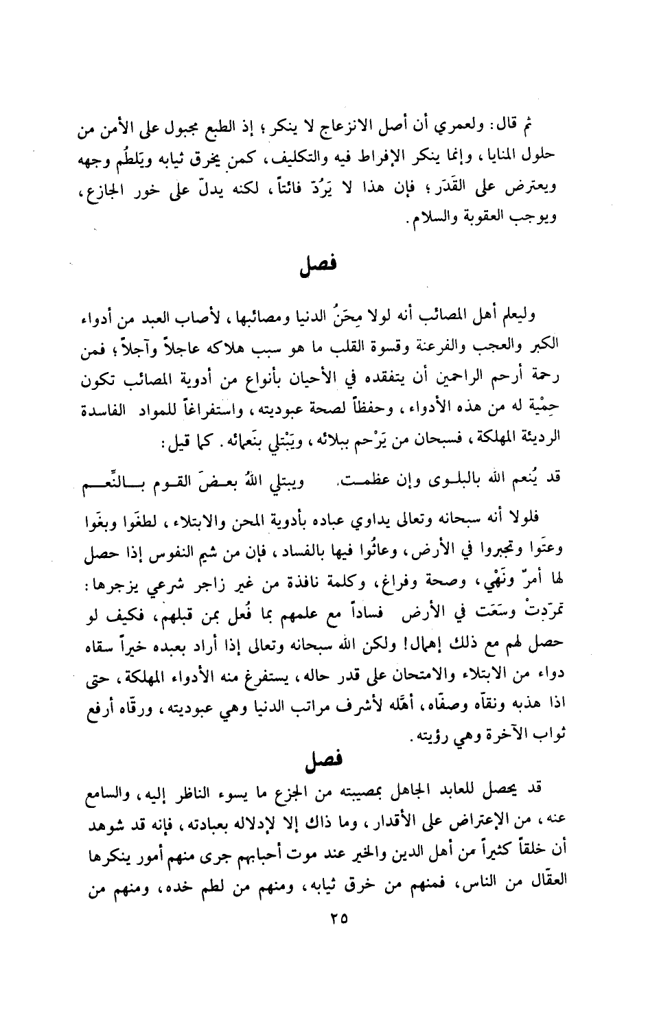 فصل ـ في اعتراض المصاب على الأقدار ودلالته بعبادته