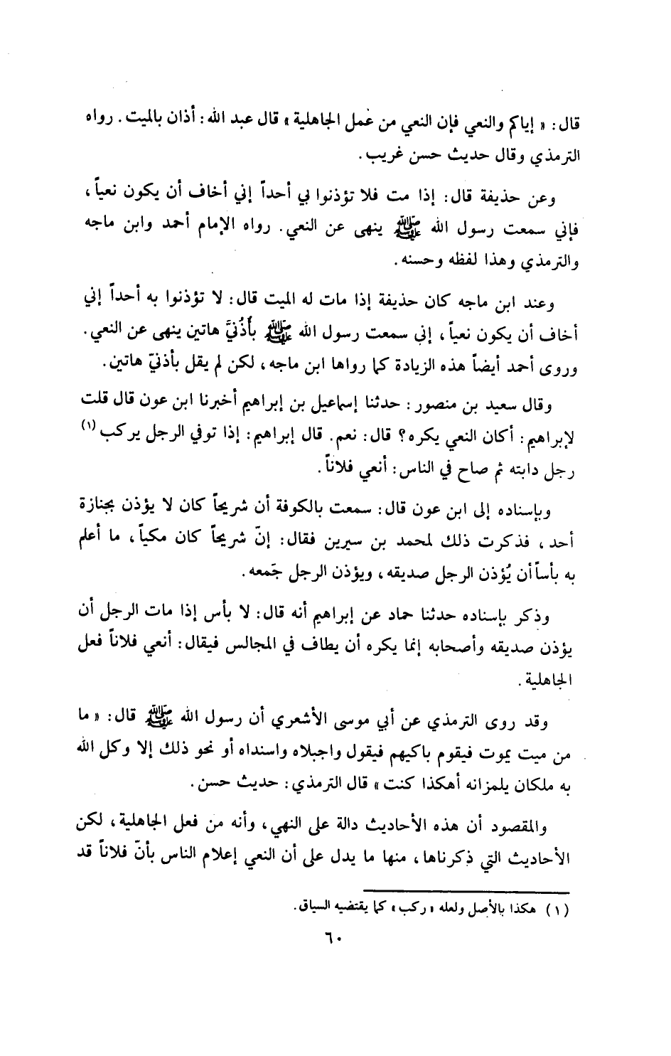 والمقصود أن هذه الأحاديث دالة على النهي، وأنه من فعل الجاهلية، لكن الأحاديث التي ذكرناها، منها ما يدل على أن النعي إعلام الناس بأن فلاناً قد