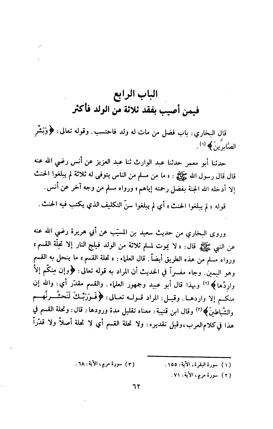 الباب الرابع ـ فيمن أصيب بفقد ثلاثة من الولد فأكثر والبشارة له بذلك