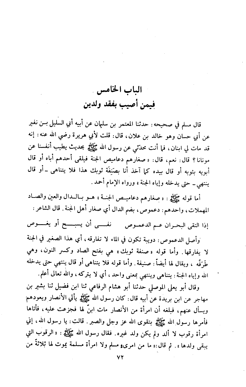 الباب الخامس: فيمن أصيب بفقد ولدين والاحاديث الواردة فيه