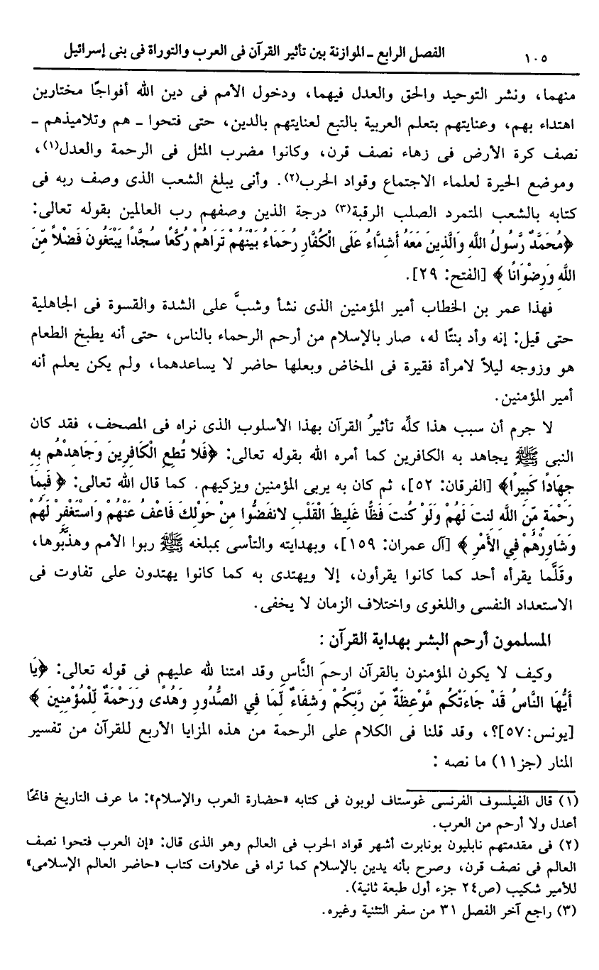 (1) قال الفيلسوف الفرنسى غوستاف لوبون فى كتابه «حضارة العرب والإسلام»: ما عرف التاريخ فاتحا أعدل ولا أرحم من العرب.