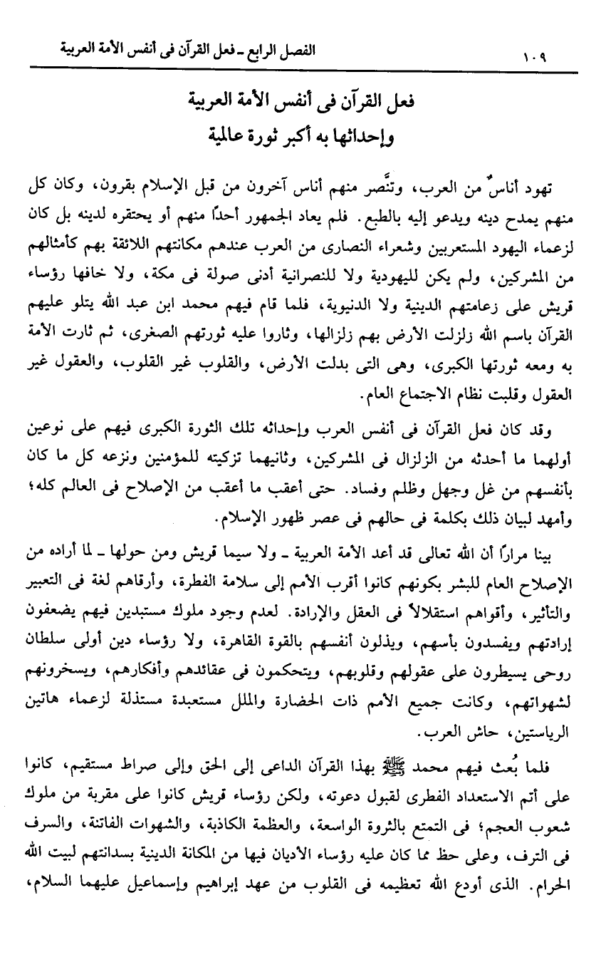 فعل القرآن فى أنفس الأمة العربية وإحداثها به أكبر ثورة عالمية